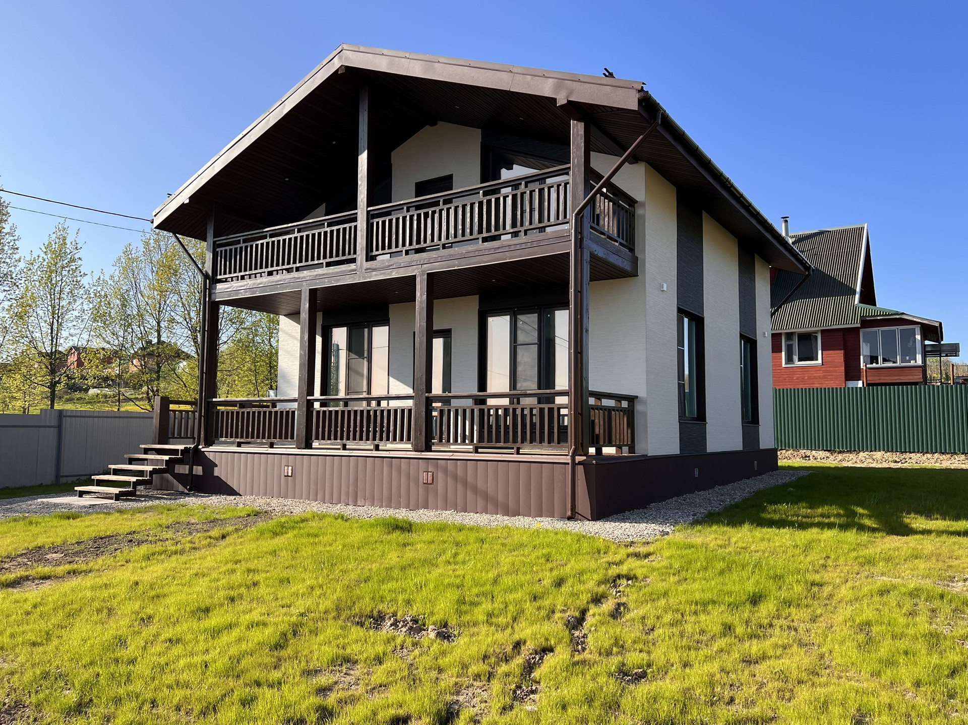 Сделана подсыпка дорожек, по всей площади участка сделан газон.