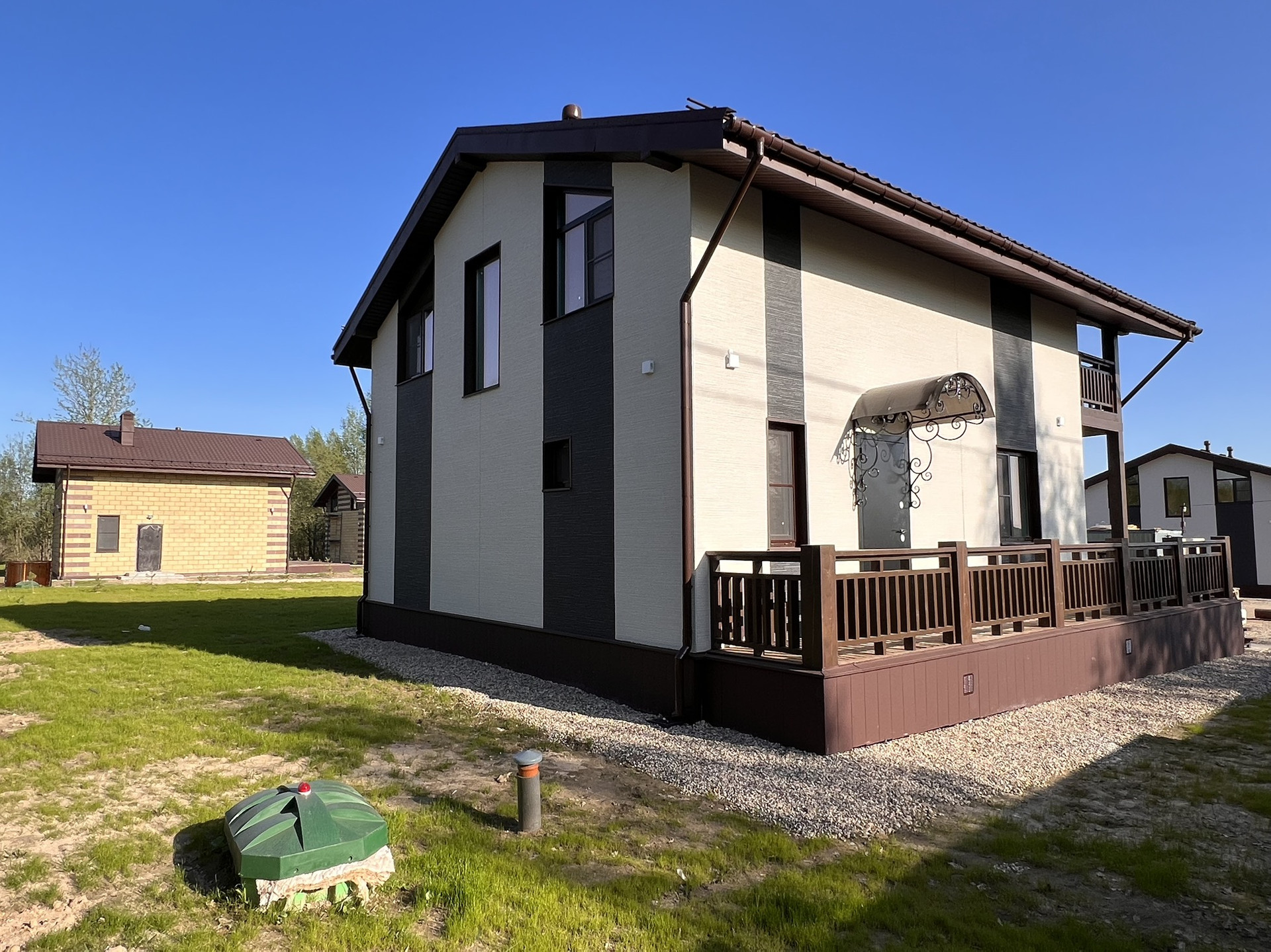 Приватный поселок на 5 домов (2 уже продано), очень красивое место, закрытая территория (обнесена забором),центральная въездная группа с откатными воротами, свой участок 8 соток + общая территория для парковки.