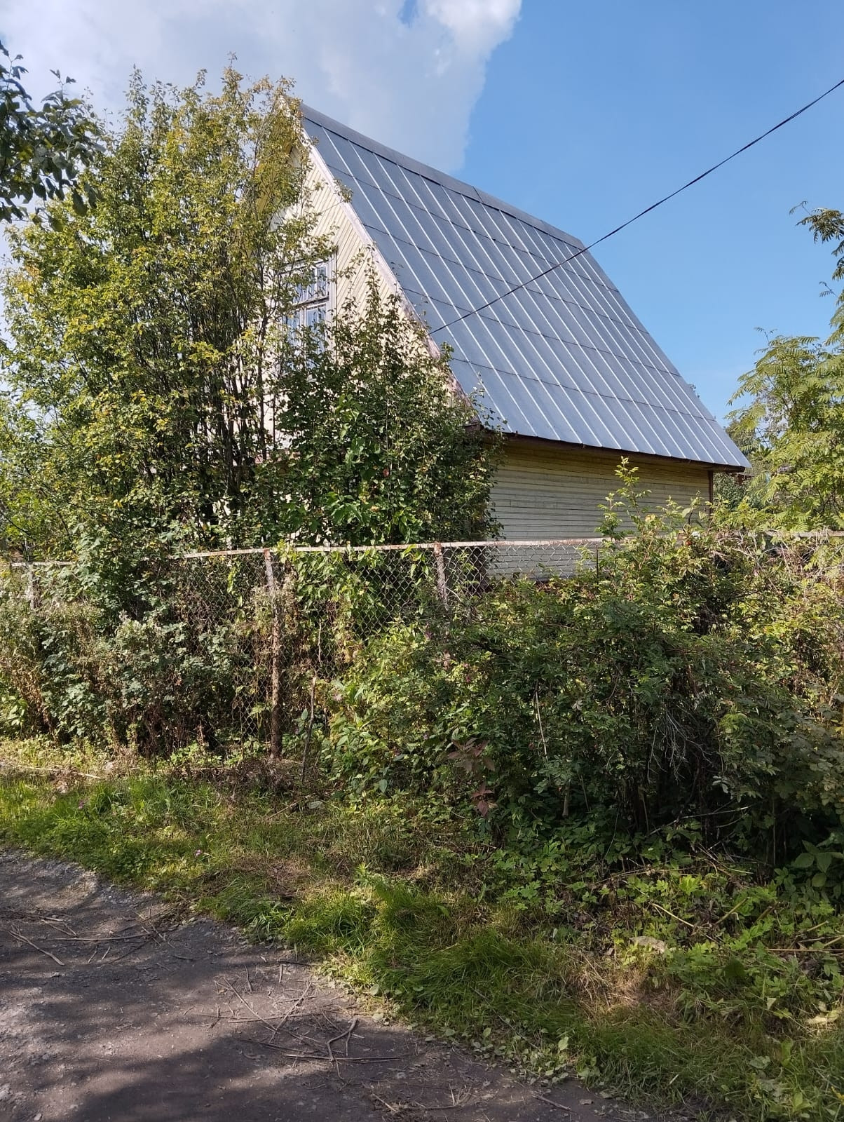 На участке есть колодец (требует чистки), две железные теплицы 6×3, железная будка. Забор сетка.