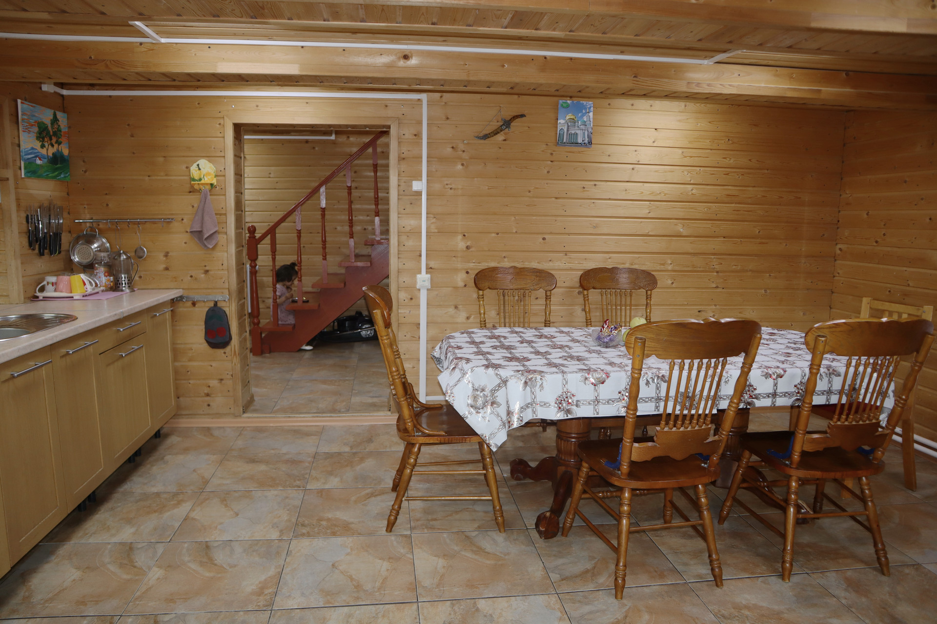 ВЕСЬ ДОМ ОТДЕЛАН ДЕРЕВОМ, пол ПЛИТКА или ЛИНОЛИУМ.