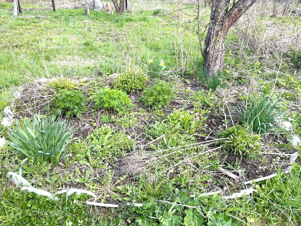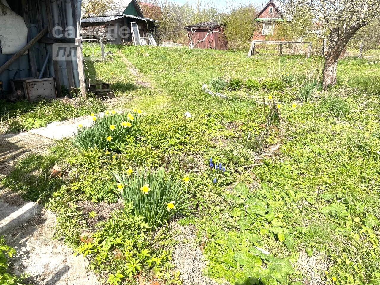 -Участок сухой, есть плодовые яблони, цветы, грядки.