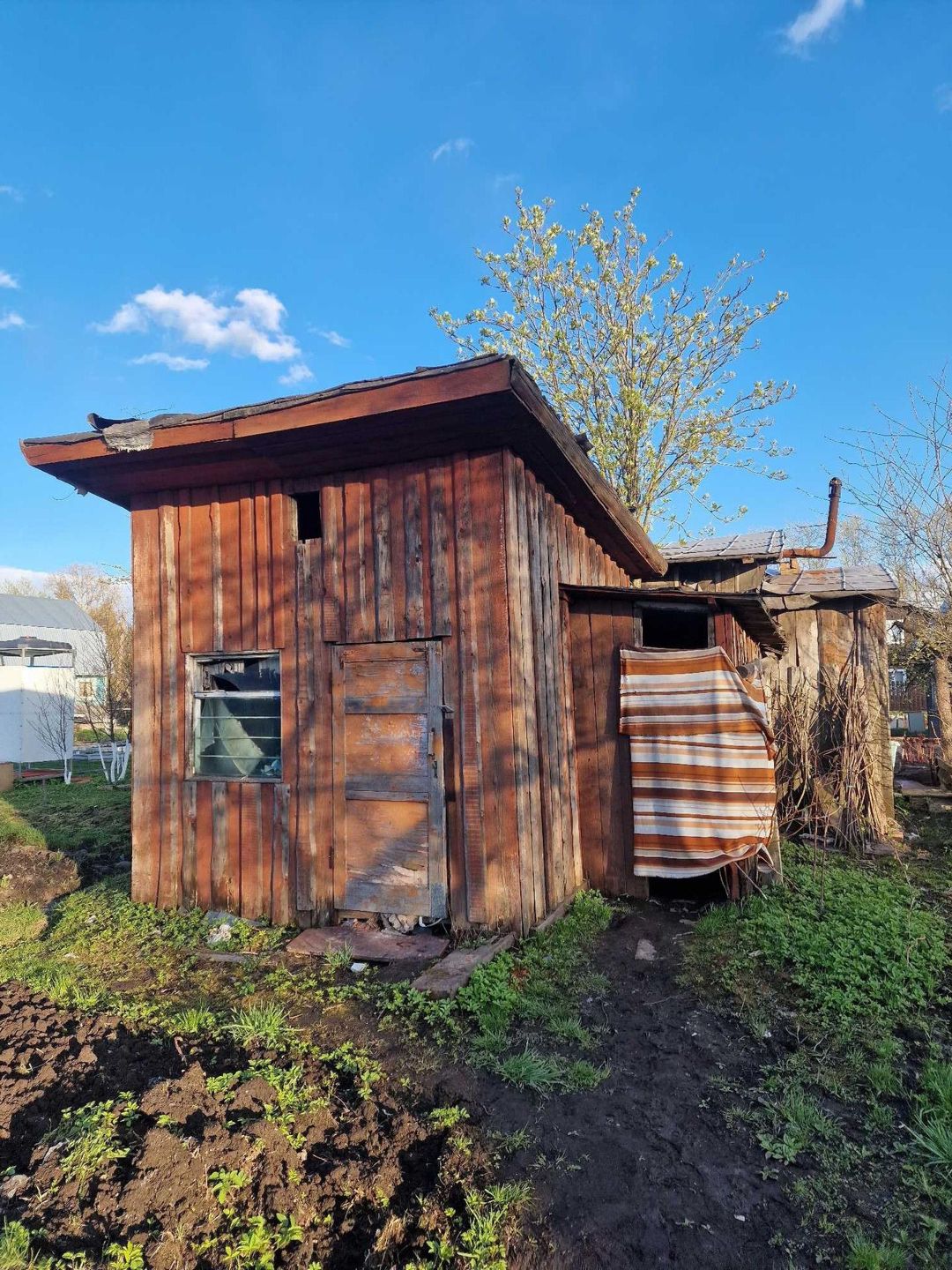 Также есть сарайка и вагончик переделанный под баню.