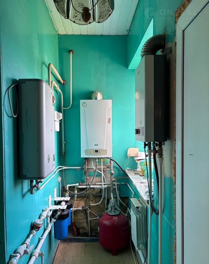 - Отопление и горячее водоснабжение - газовое. Два котла: один на отопление (можно сделать и отопление, и горячую воду) и один на воду. Газ в доме. Вход в дом: основной, гараж, черный вход.