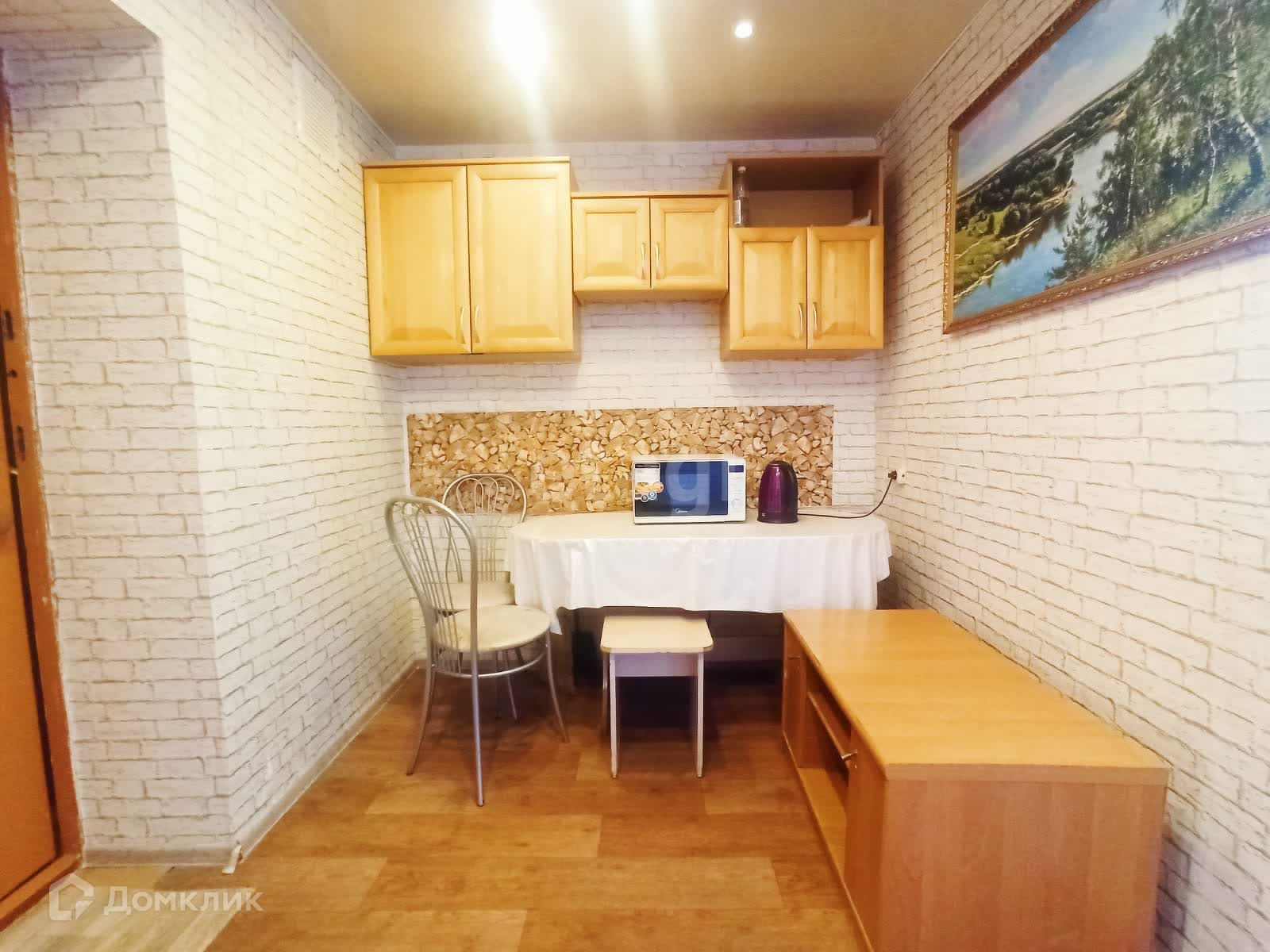 Комната разделена две зоны. 1-входная зона с маленькой кухней; 2-жилая зона. Сделан косметический ремонт. Берешь сумку с вещами и заезжаешь.