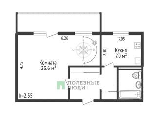 Продаю 1-комнатную квартиру, 29.4 м2, Архангельская улица, 13