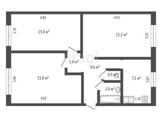Общая площадь: 53.2 м2