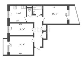 Продается 3-комнатная квартира, 67.1 м2, Остинская улица, 40