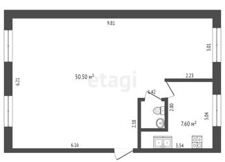 Общая площадь: 54.3 м2