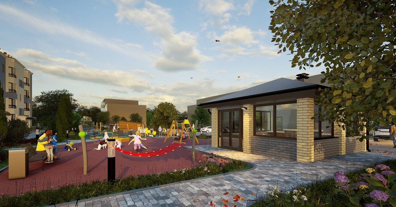 - детская и спортивные площадки с покрытием из резиновой крошки;