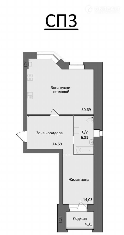 Жилая площадь 14.1 м2