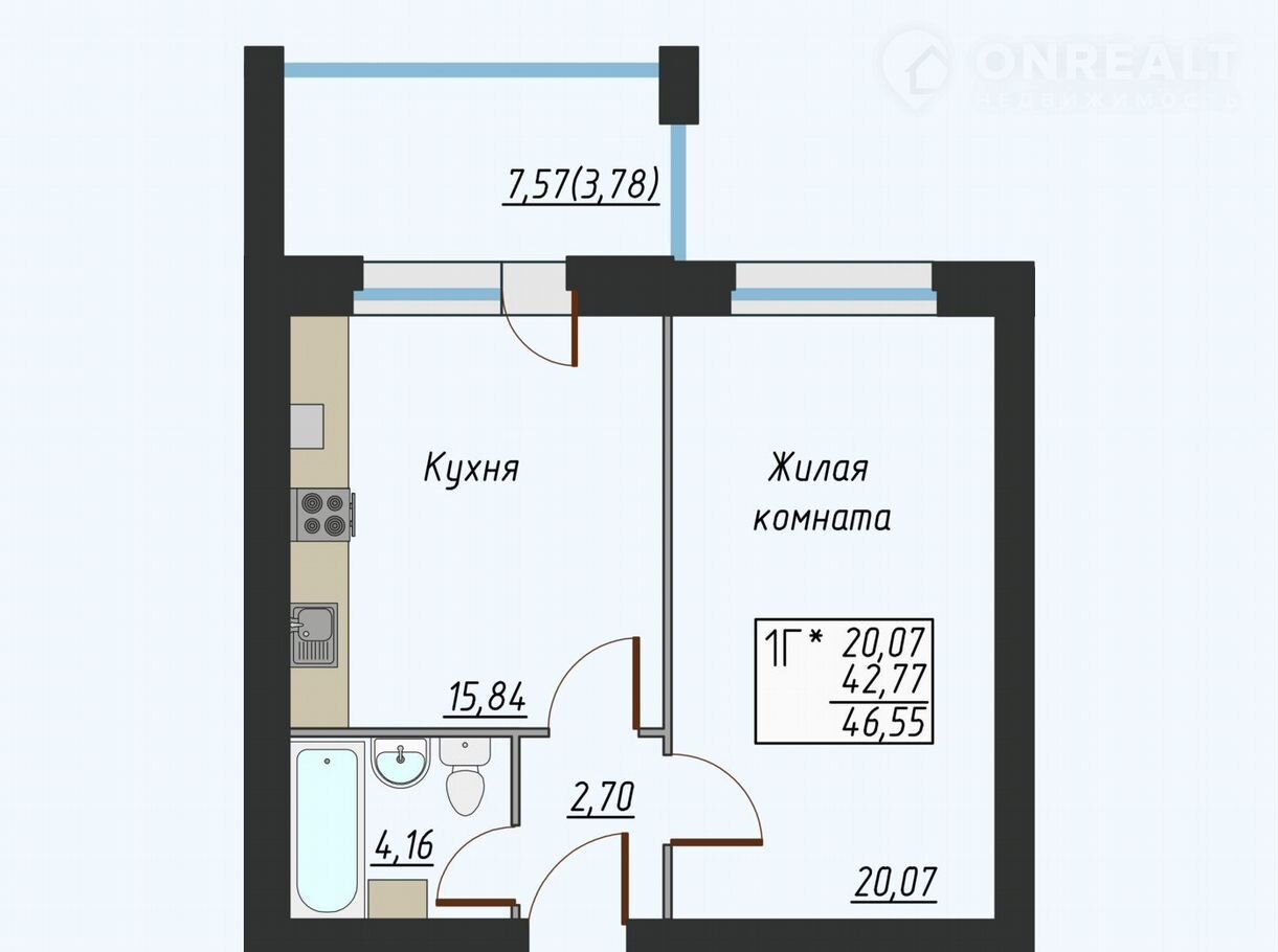 Балкон, лоджия 1 лоджия