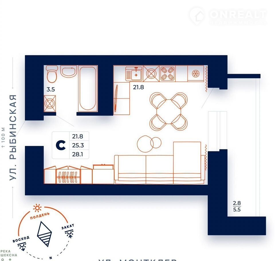 Общая площадь 28.1 м2