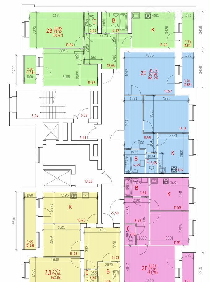 Общая площадь 65.8 м2