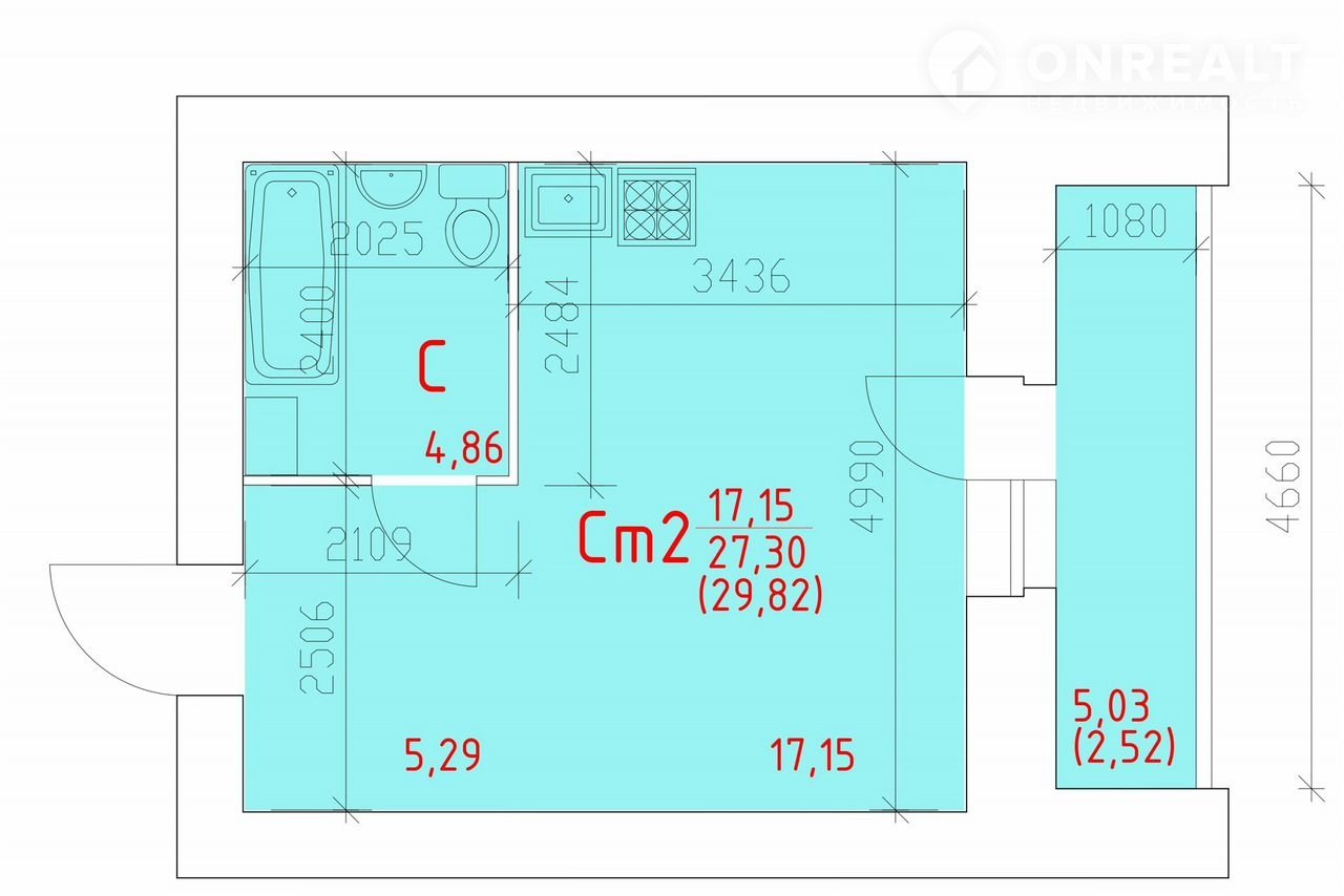 Общая площадь 29.8 м2