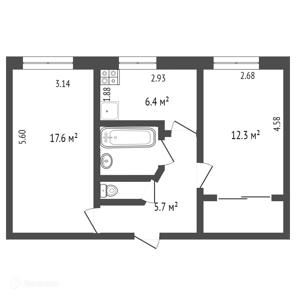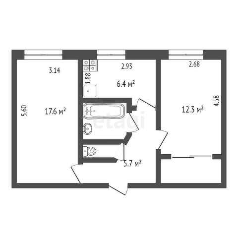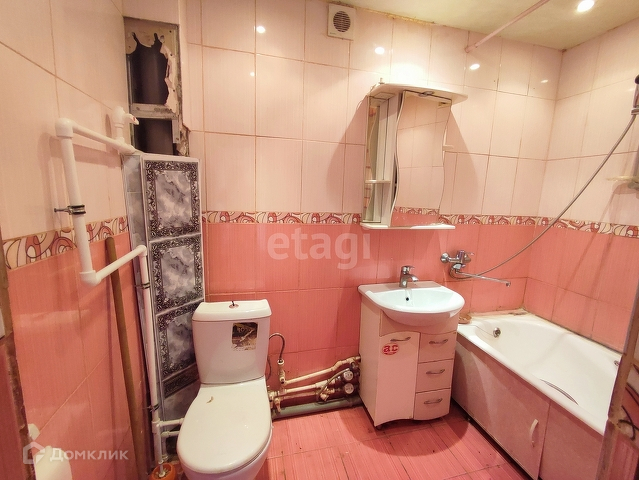 Ванна и туалет — совмещены, полностью в кафеле. Плюс, трубы заменены на пластик — вы экономите деньги и время. Согласитесь, это важно!