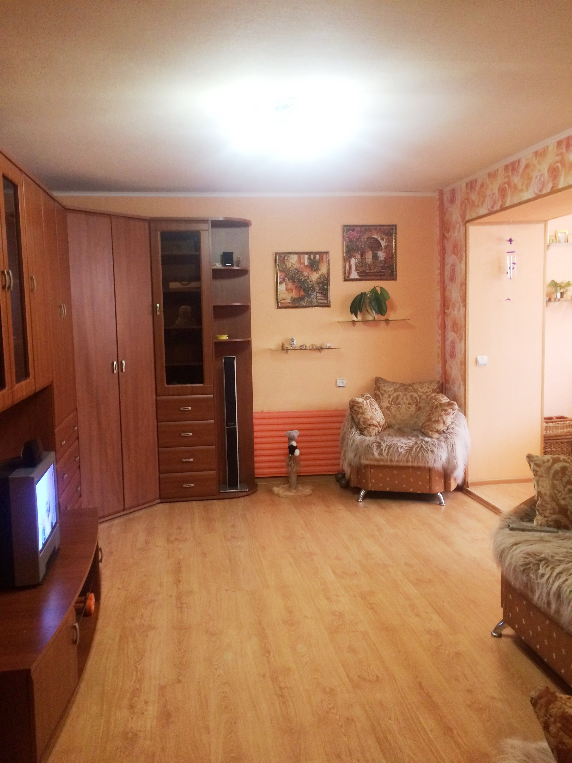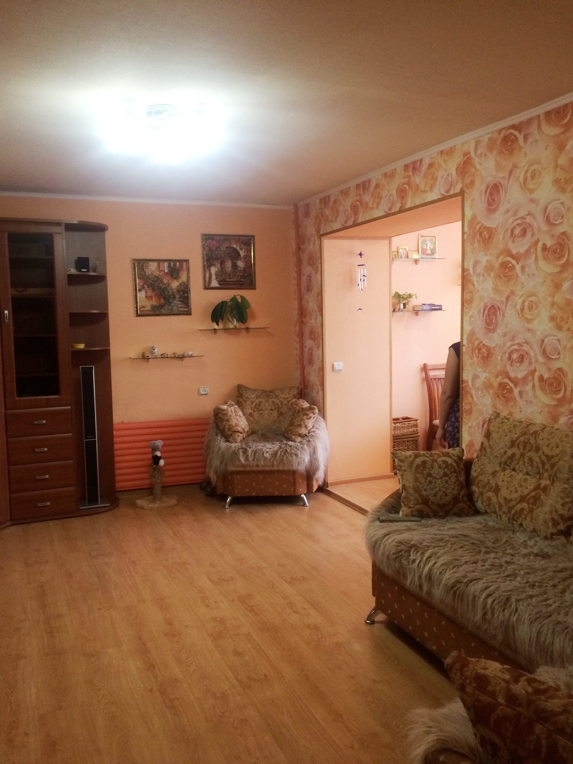 Продается уютная квартира в семейном общежитии, на 2 этаже 5 этажного кирпичного дома, лоджия 6 метров застеклена, утеплена и обшита. Везде установлены стеклопакеты. Сан/узел на этаже, общий, в хорошем состоянии.