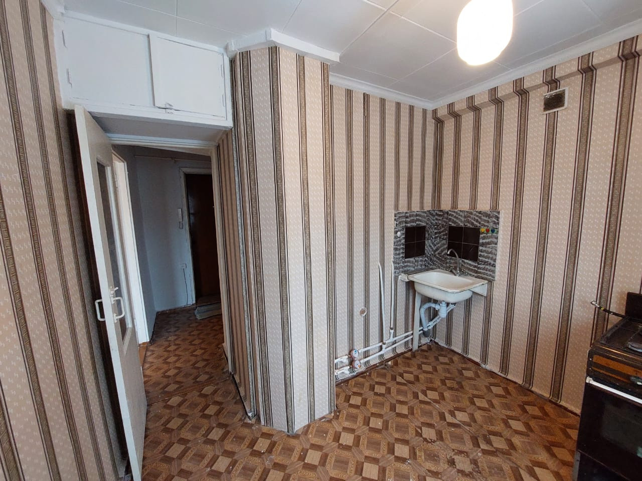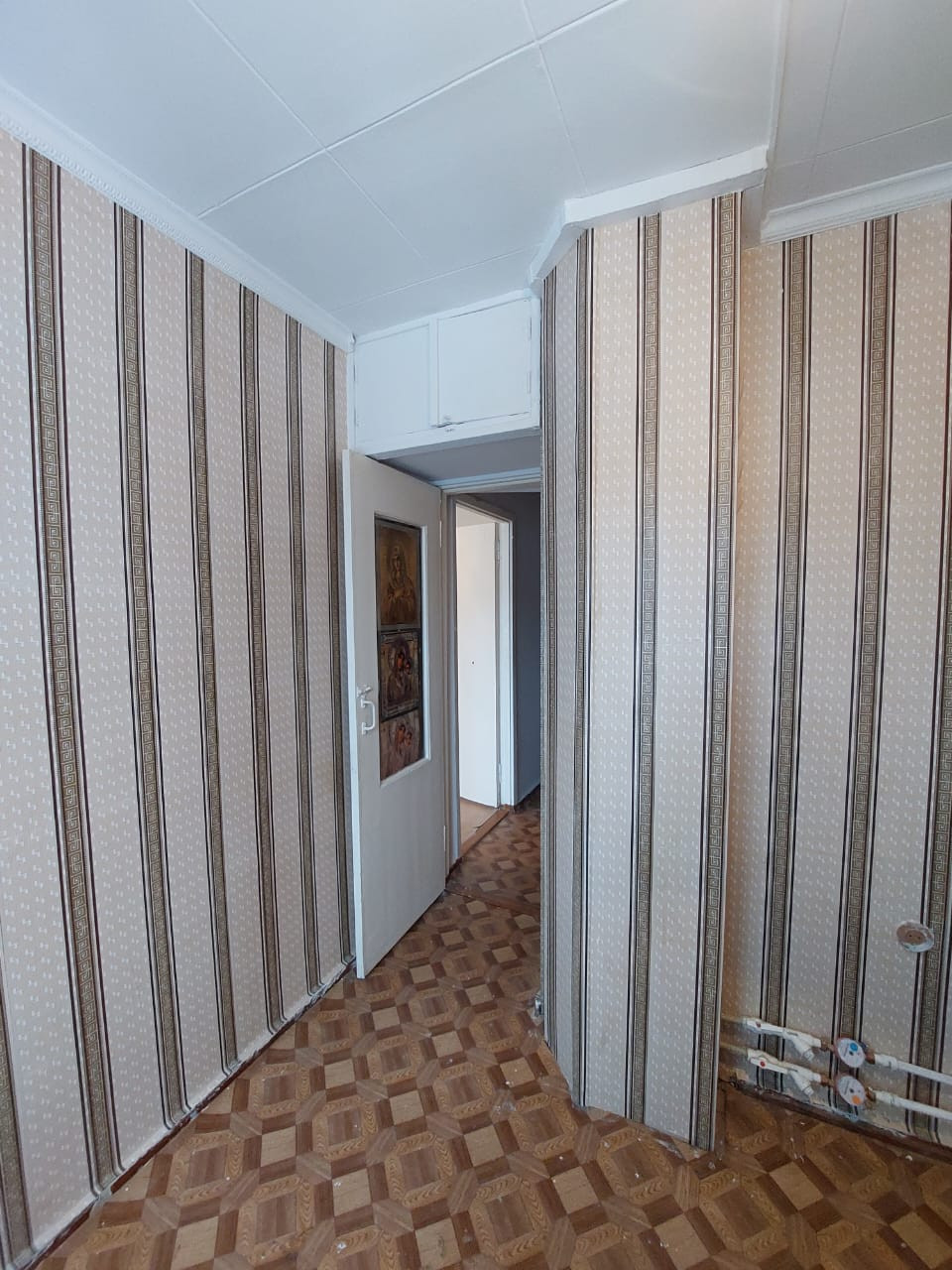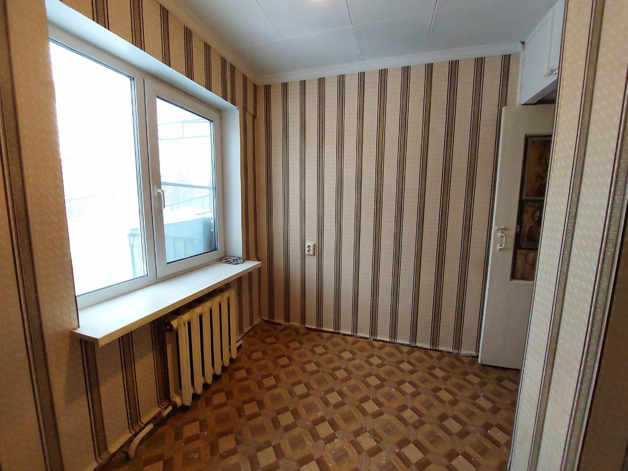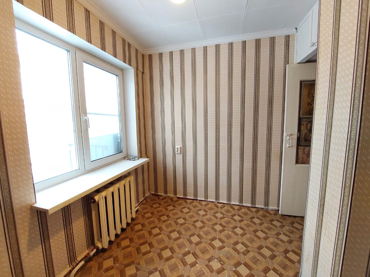 Теплая квартира, поклеены  в комнате, прихожей, на кухне обои. Стеклопакеты.