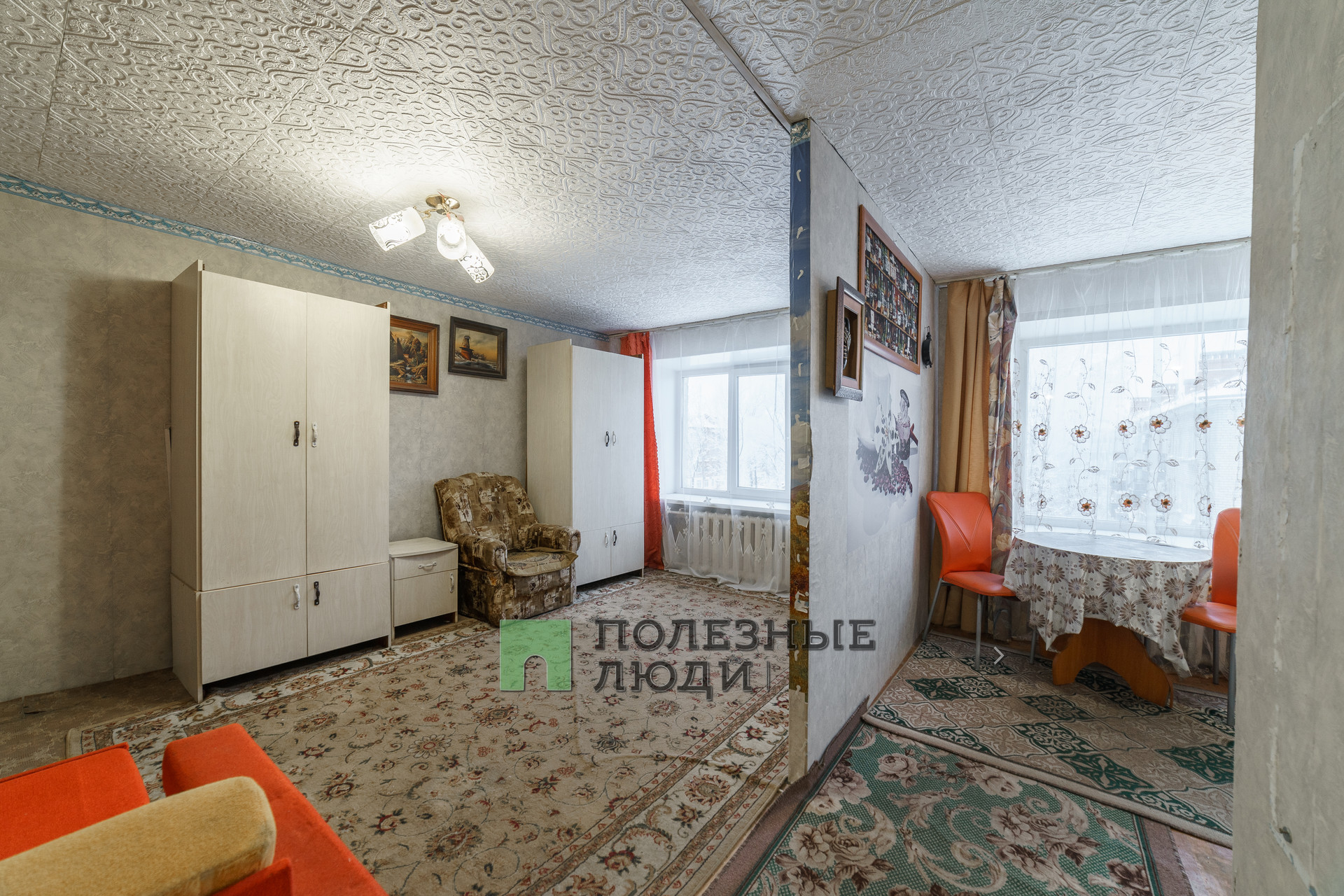 Квартира в обычном жилом состоянии. НЕ общежитие и НЕ комната. Не торцевая и не угловая, действительно теплая. Окна заменены на ПВХ стеклопакеты, заменена подводка воды на трубы ПВХ, заменен счетчик электроэнергии. Отсутствие балкона/лоджии компенсируется просторным шкафом-купе, который выполняет роль гардеробной. Можно сделать косметический ремонт и заехать жить без капитальных вложений. Покупателю остается кухонный гарнитур и остальная мебель.