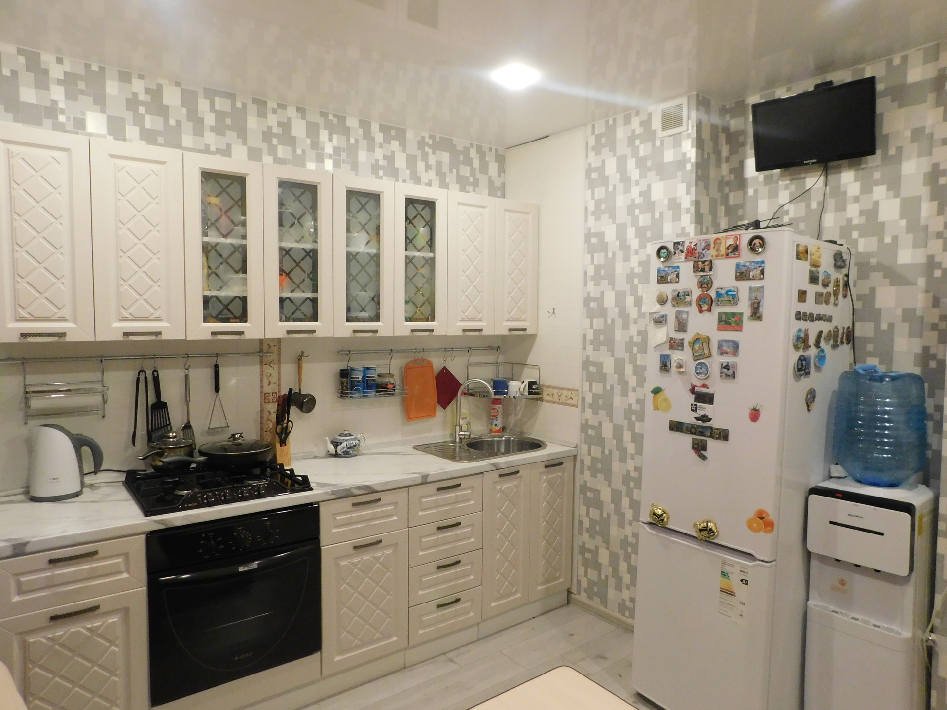 ✅натяжные потолки по всей квартире;