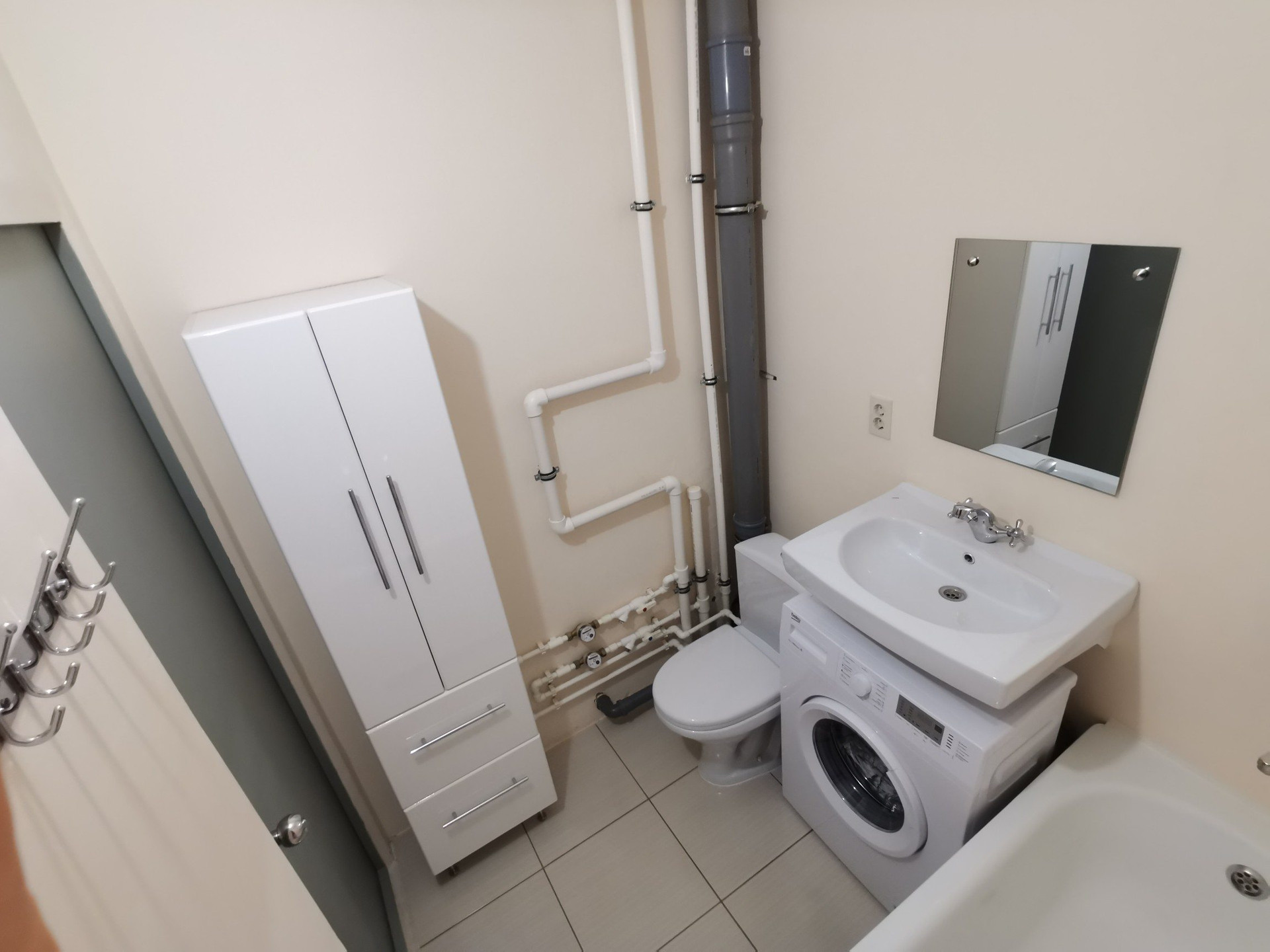 Ремонт: пол- ламинат, потолок бесшовный натяжной, матовый, окна - стеклопакеты, установлены счетчики на воду, отопление. Короб с воздуховодом под вытяжку до вентиляционного люка, в квартире нет сильного запаха еды. В ванной комнате - на полу кафель, стены окрашены, трубы для смесителя утоплены, ванна укреплена.
