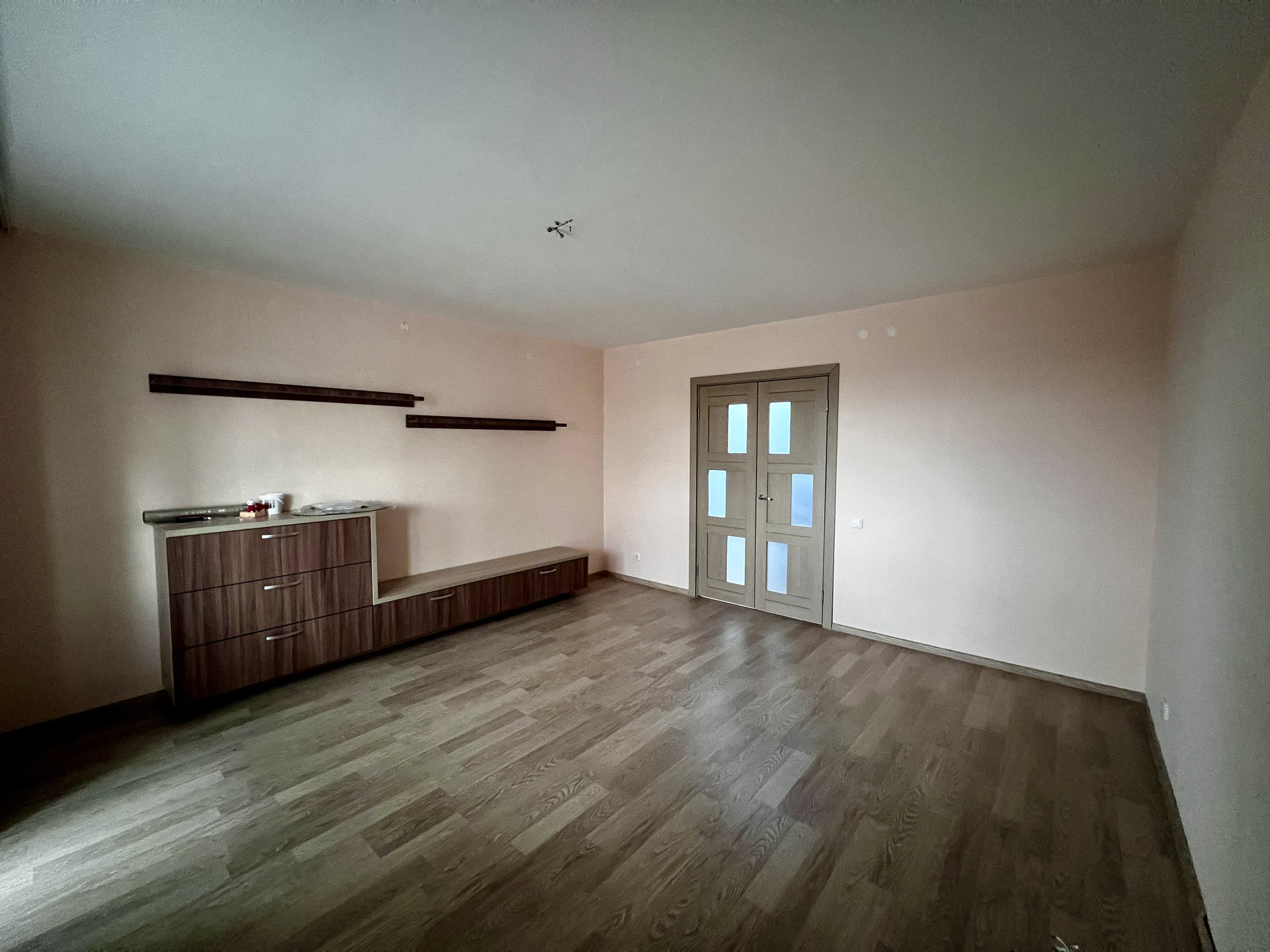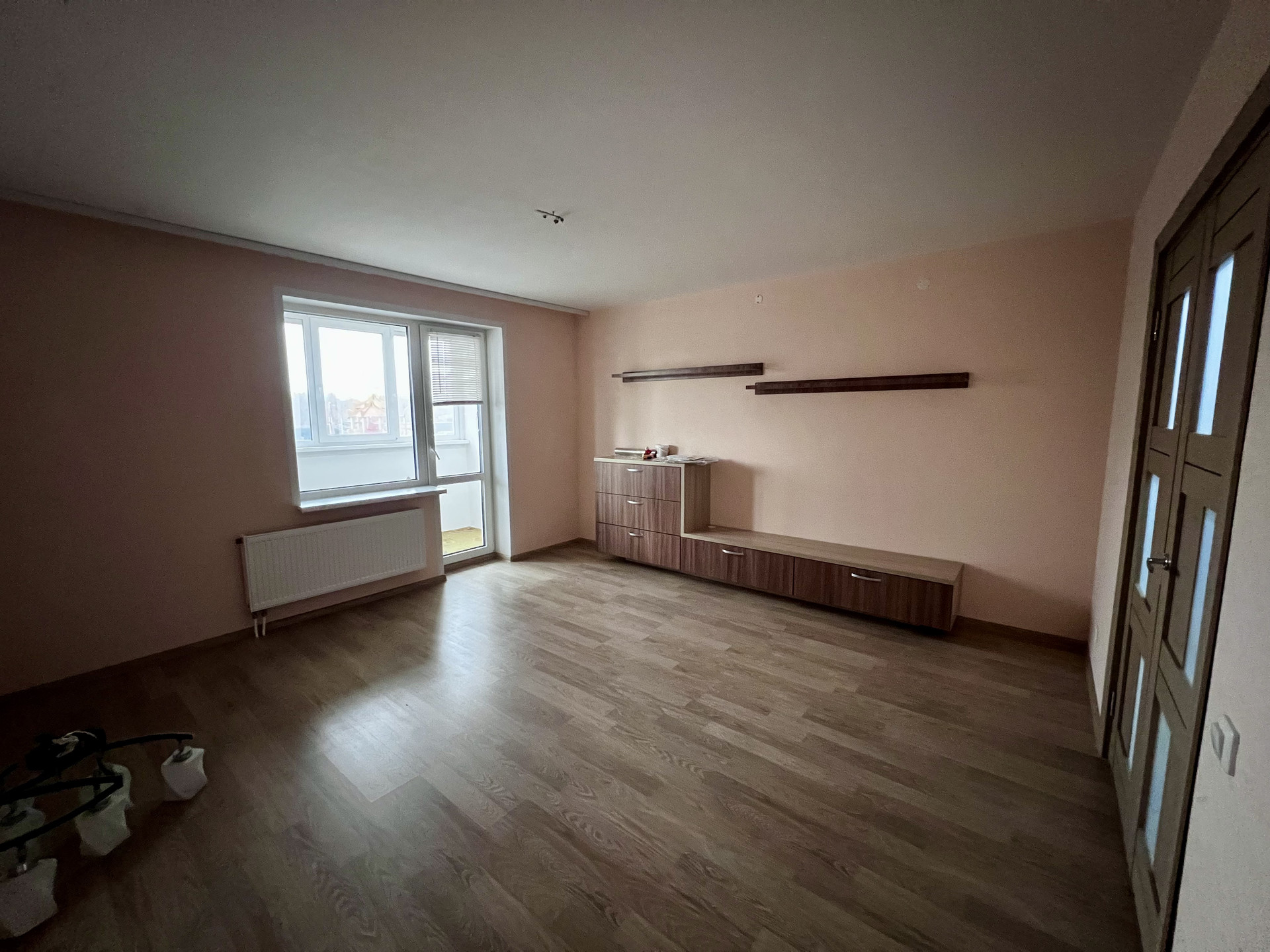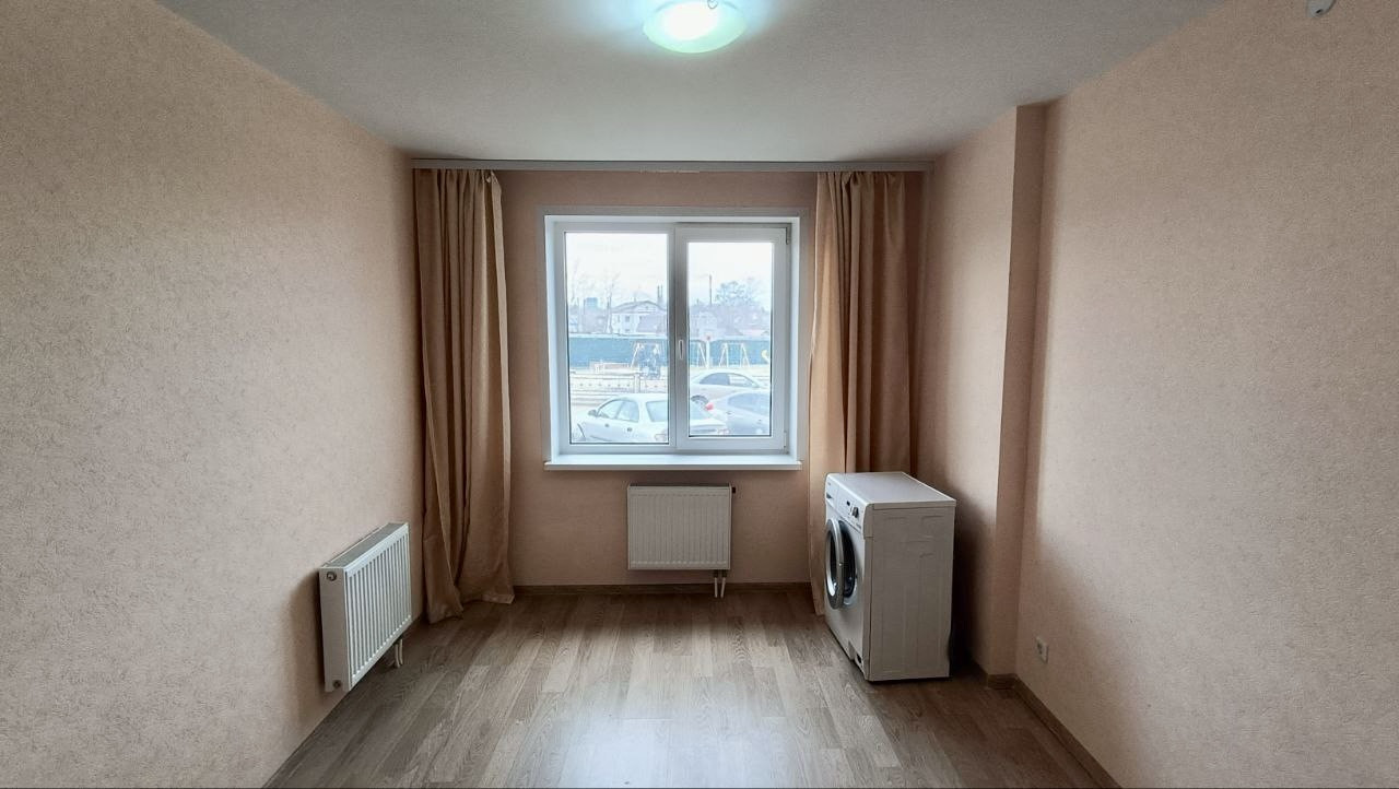 Ремонт от застройщика. Зато вы сможете все сделать на свой вкус В ванне, туалете стены и пол выложены кафельной плиткой, напольное покрытие - ламинат, обои под покраску.Установлен индивидуальный счетчик на отопление, что позволяет регулировать подачу тепла и экономить на плате. Частично тёплый пол.