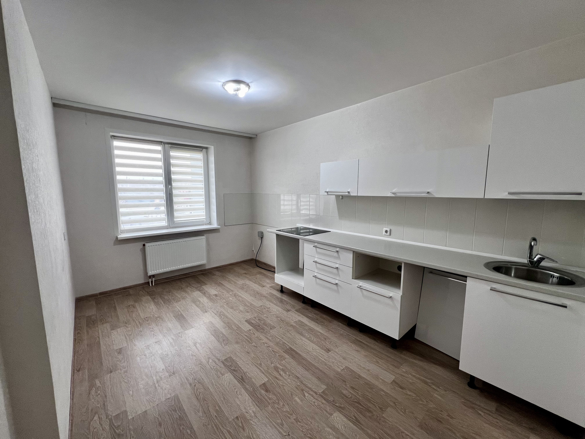 Из мебели остается: система хранения в кладовке, стенка в большой комнате, электрическая варочная панель.