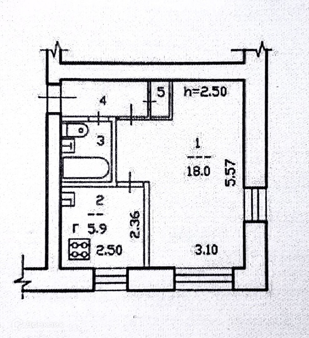 1-комнатная квартира, 30.8 м2, этаж 2 / 5, на продажу в Череповце, Парковая улица, 24Б