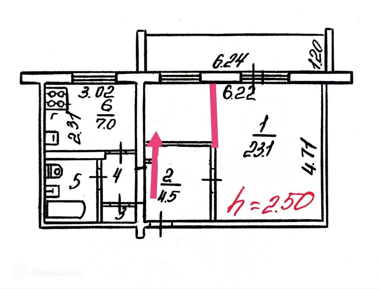 Жилая площадь 23 м2