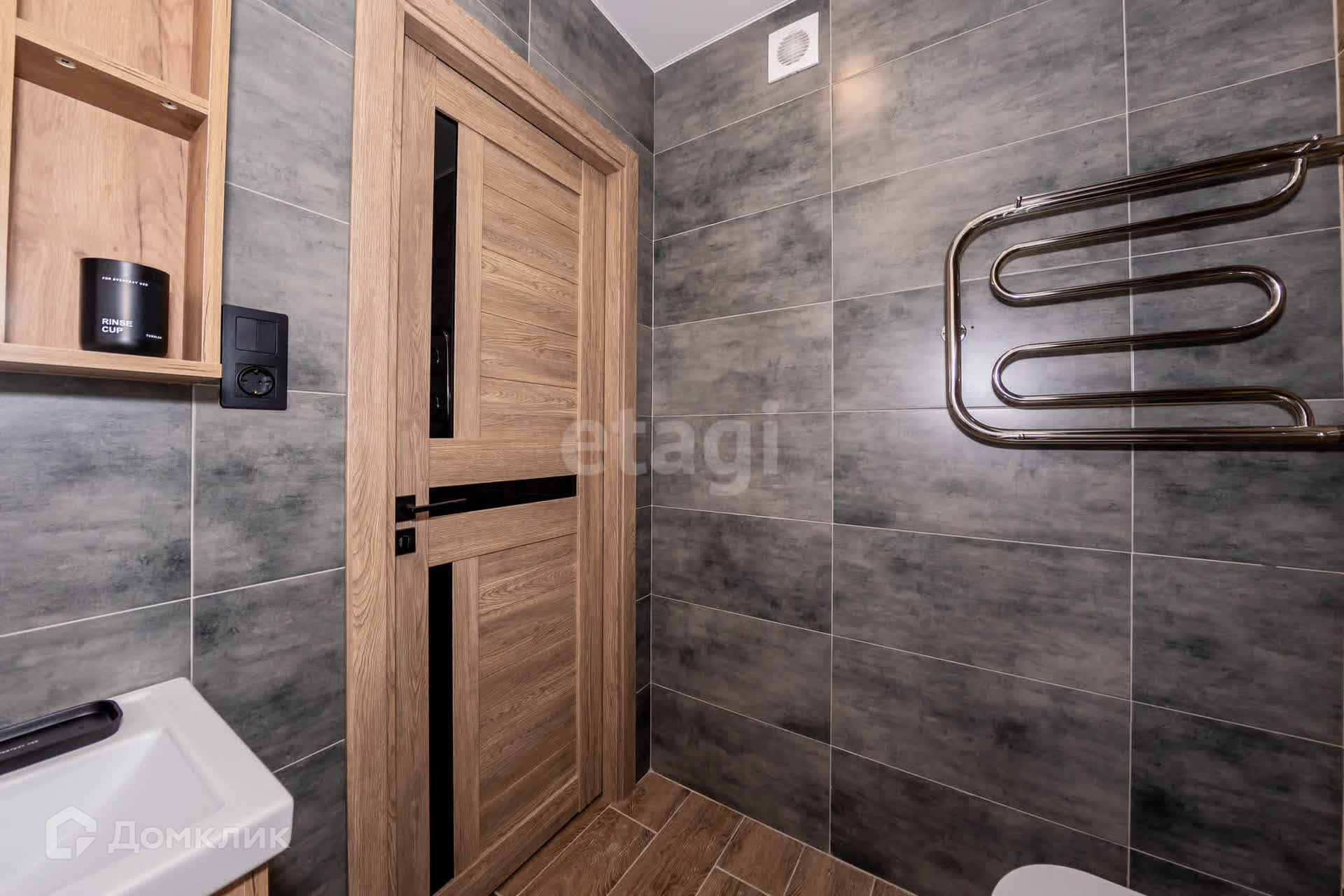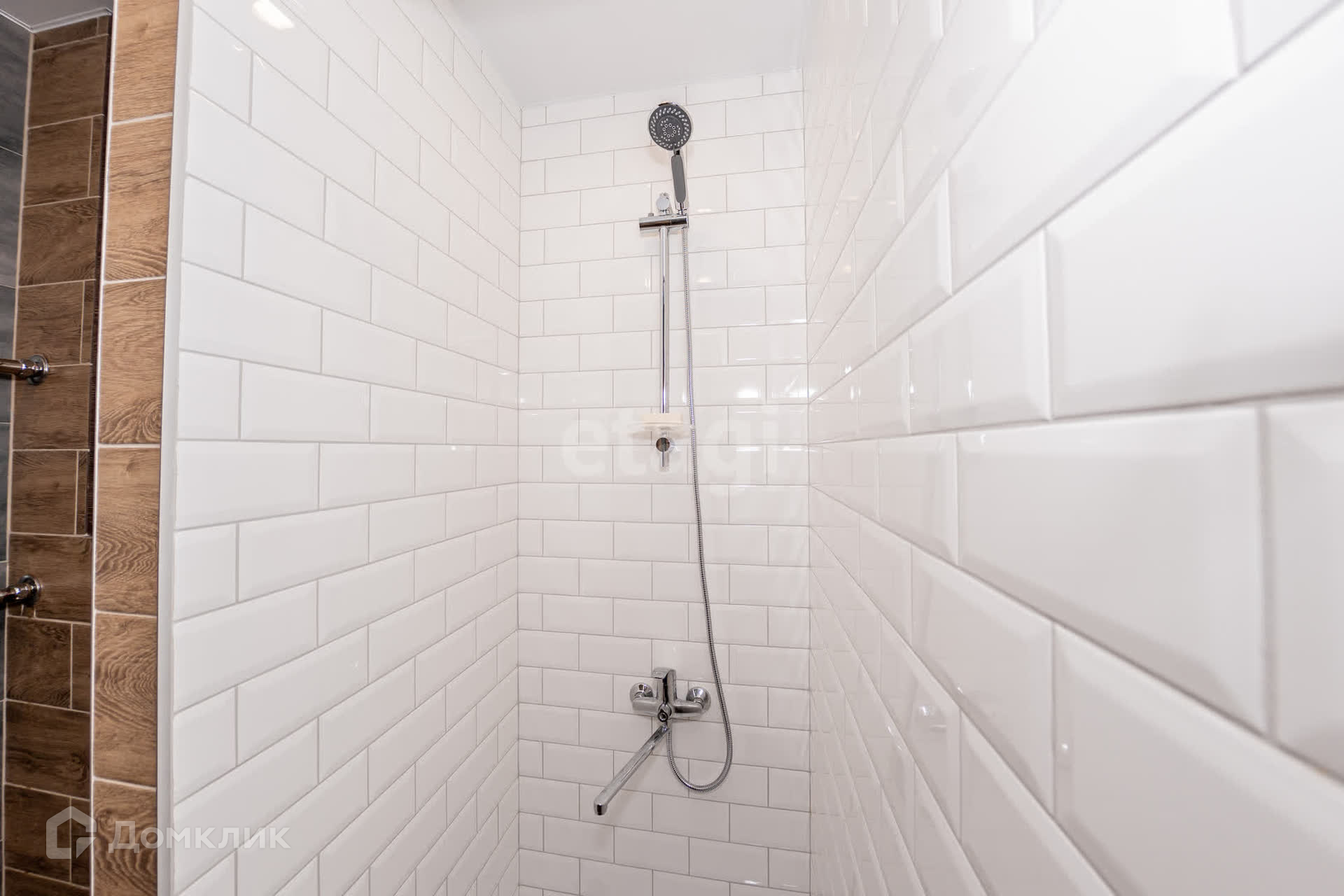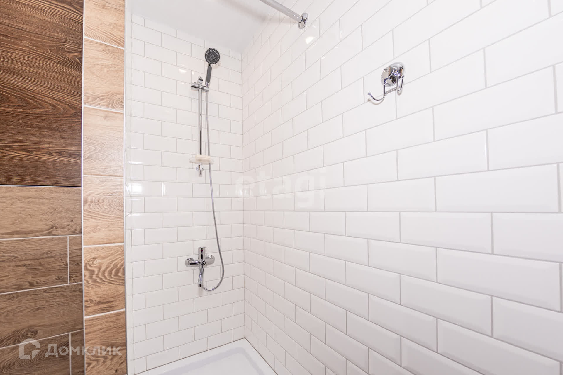 Кафель по периметру всей площади студии.