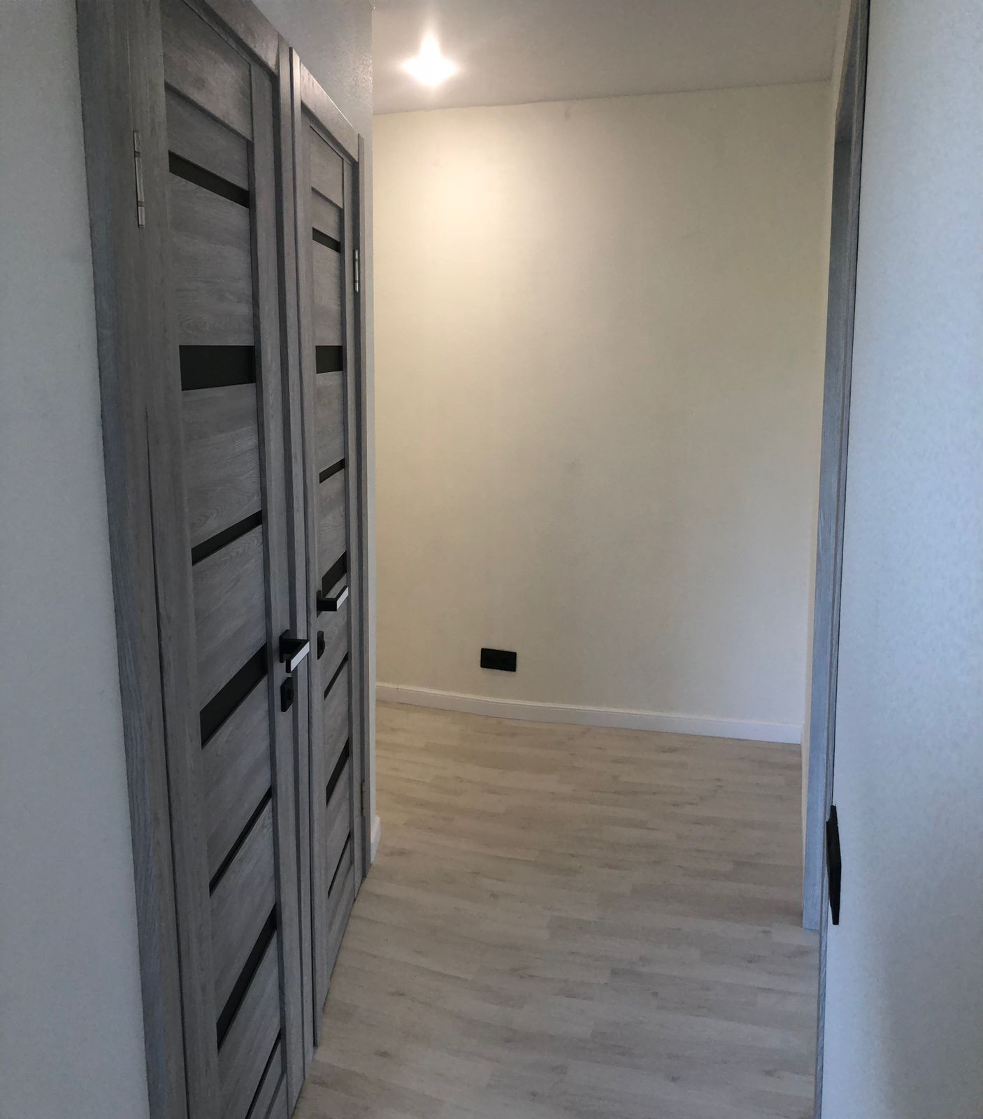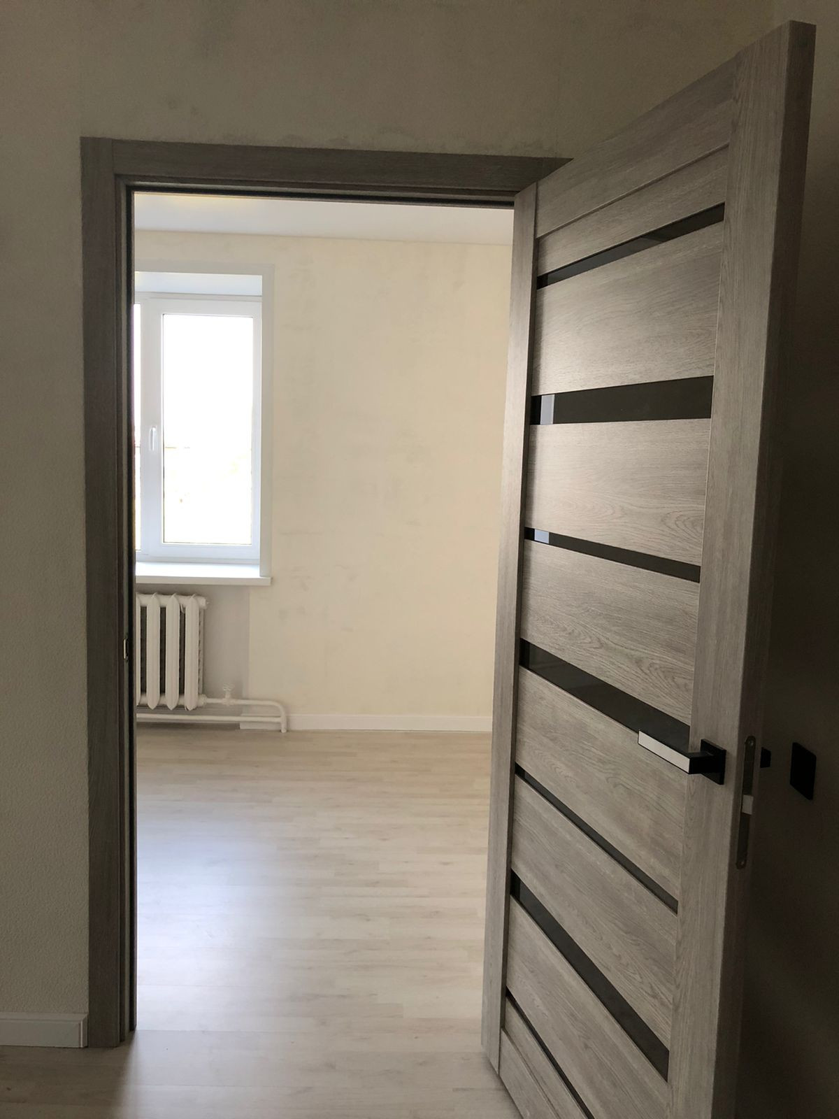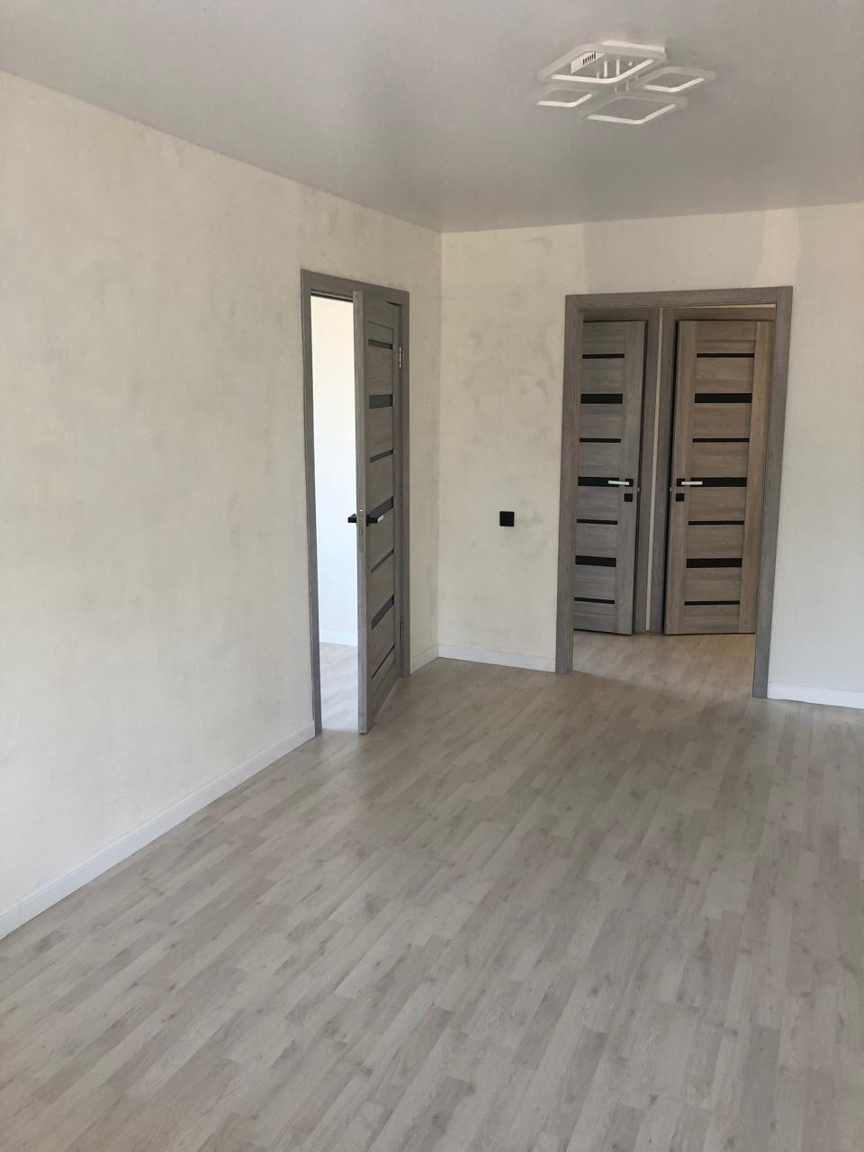 Потолки натяжные, пол ламинат, окна ПВХ, заменена вся проводка, светильники диодные, управление с пульта, обои виниловые под покраску, двери дуб евро с тонированным остеклением