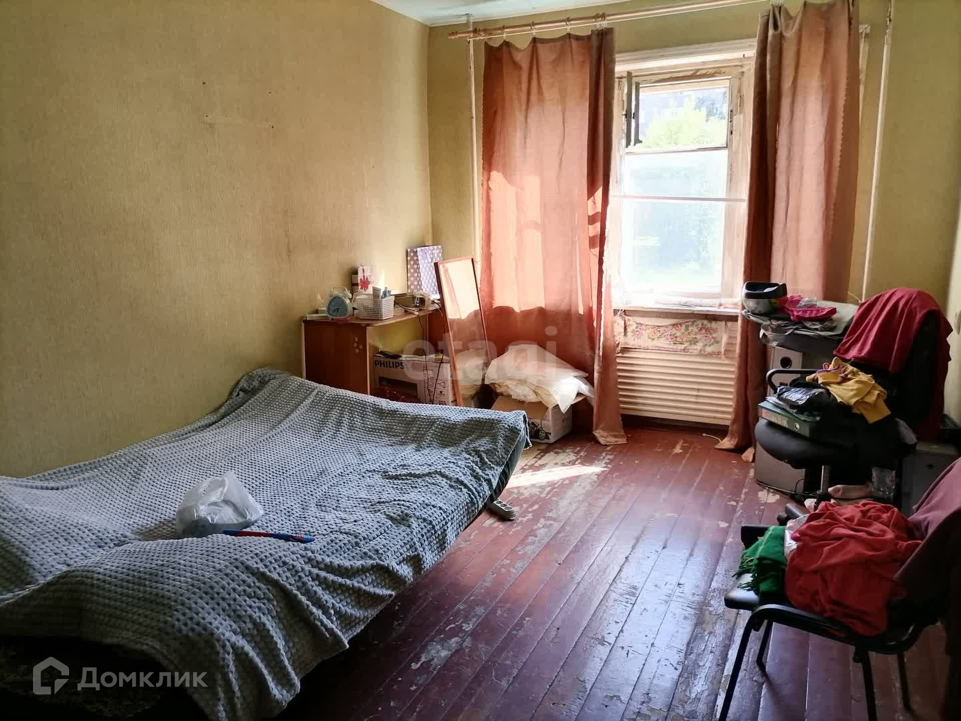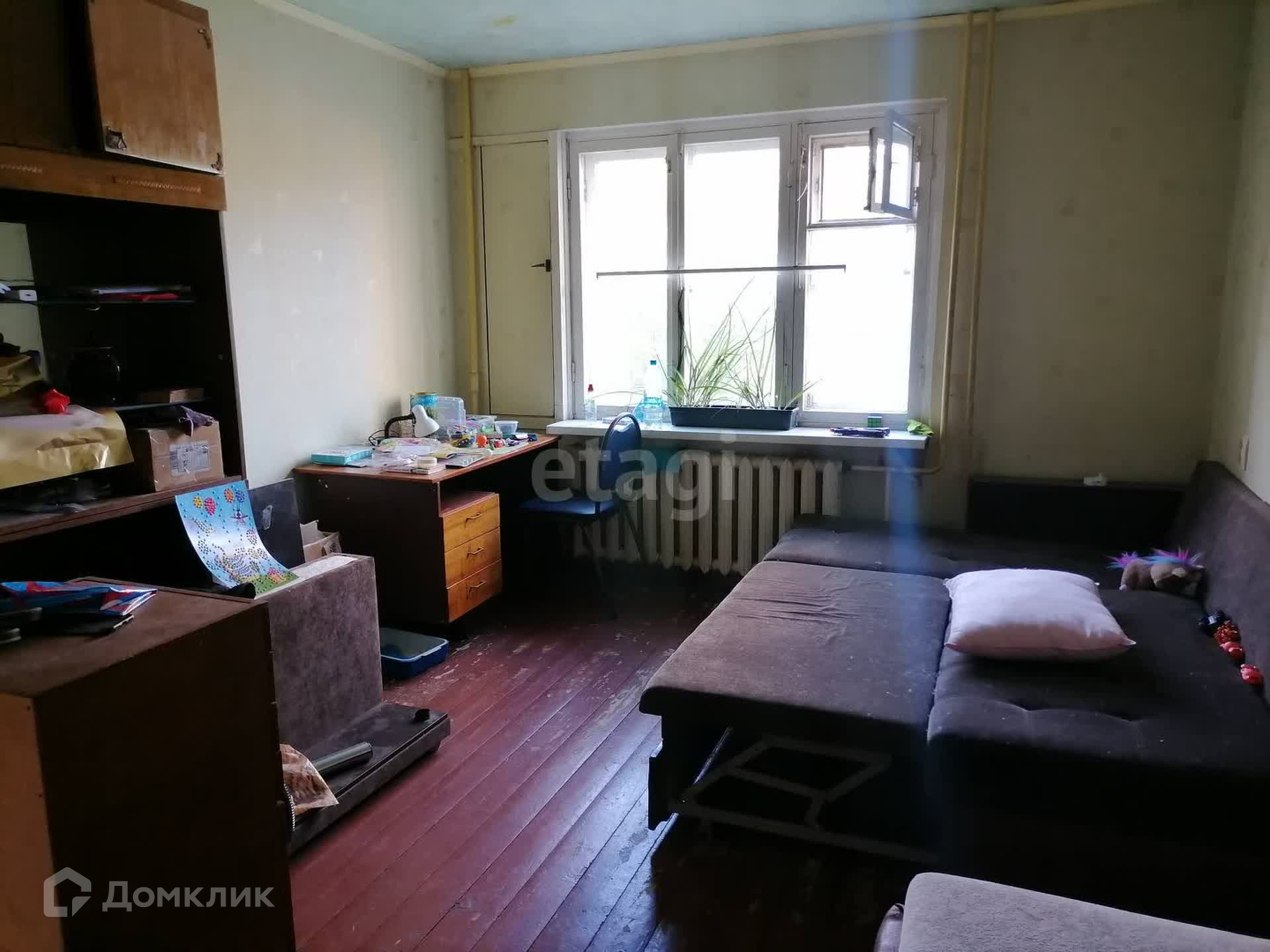 Доп. описание: санузел раздельный, деревянные окна, в доме есть: детская площадка, открытый двор, наземный паркинг, лифт пассажирский, требует ремонта/частичный ремонт, также имеются: интернет, кабельное телевидение, счетчики холодной и горячей воды, домофон, железная дверь, шкаф-купе