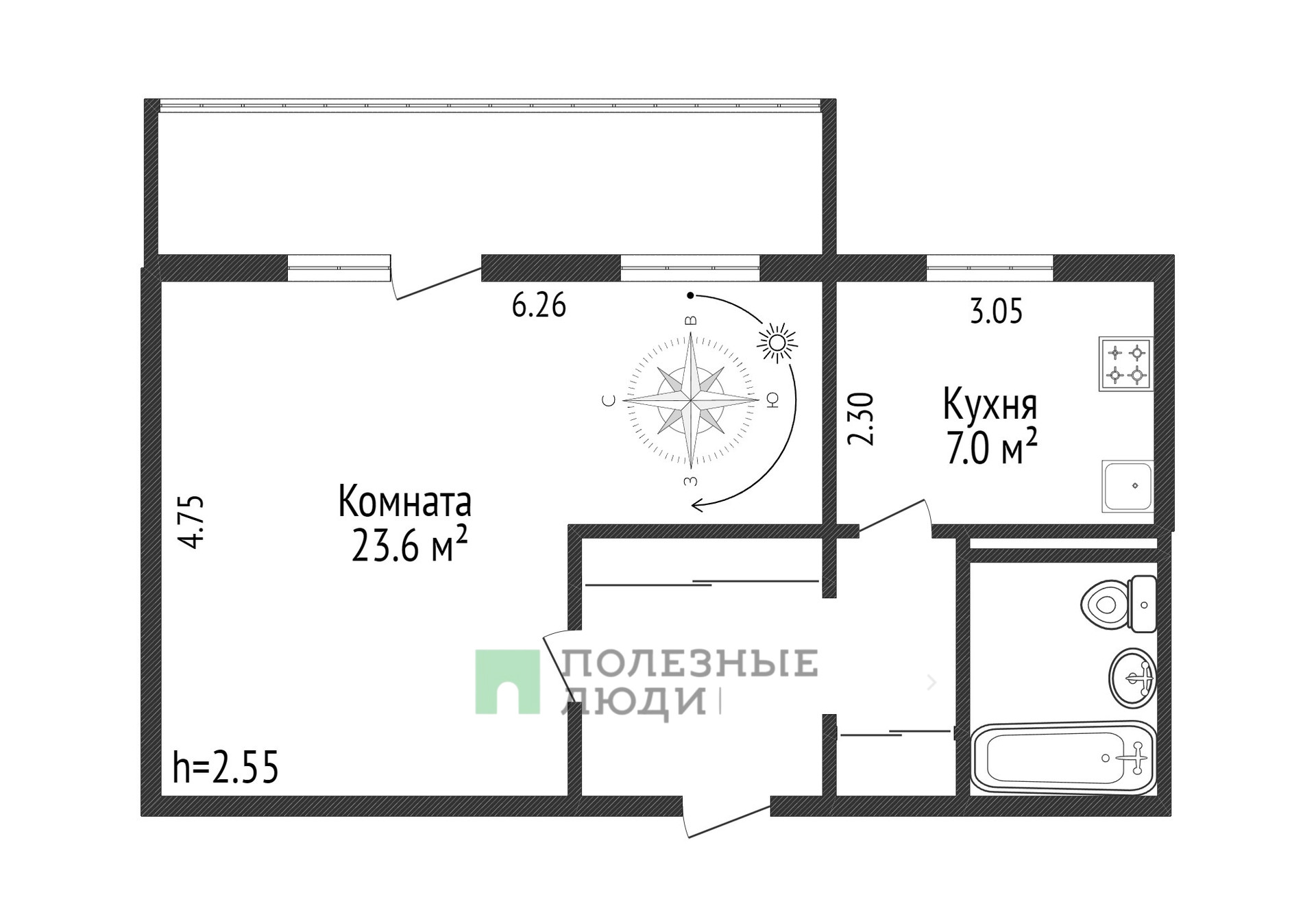 ► Жилая: 23,6 м²