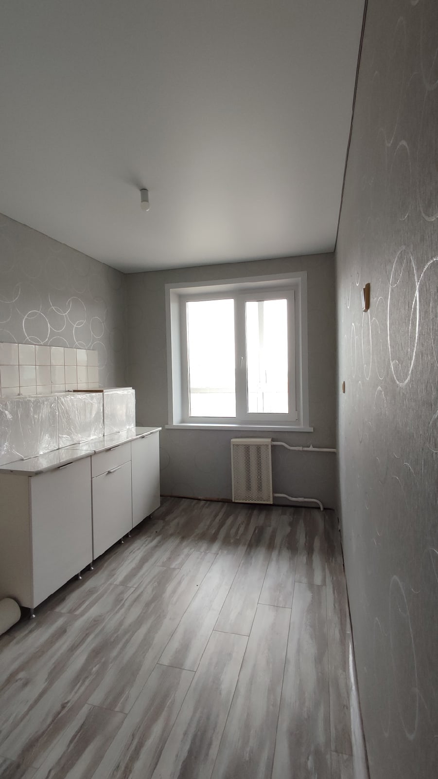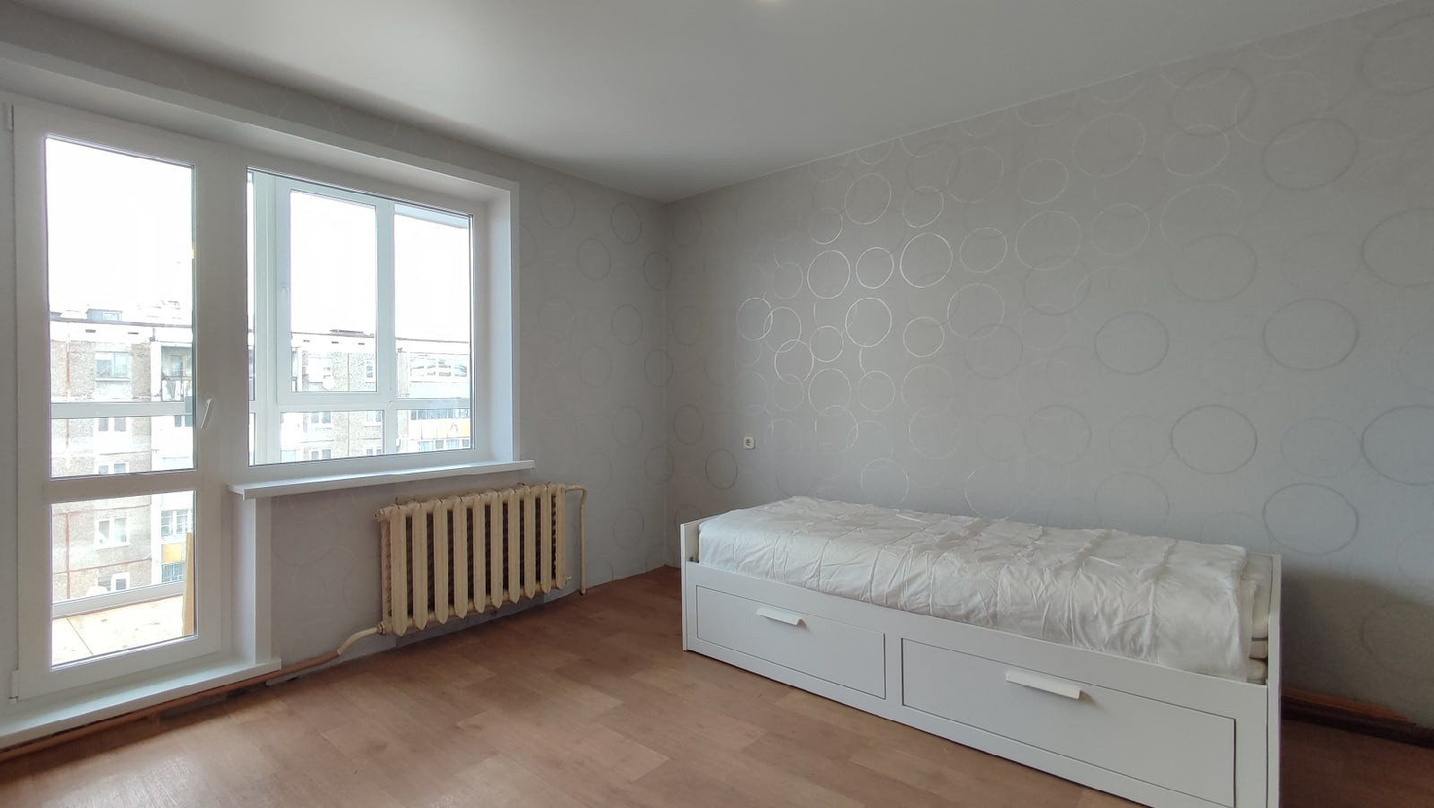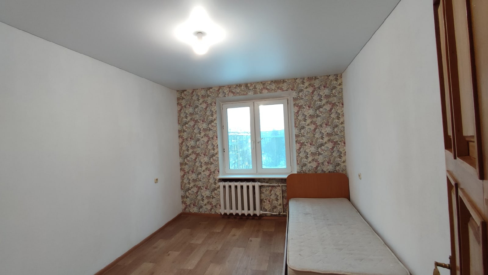 В квартире выполнен свежий ремонт. Свежие плотные виниловые обои в светлых тонах, натяжные потолки, пол ламинат/линолеум.