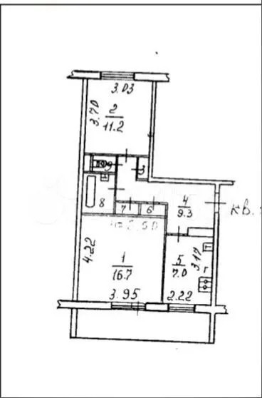 Комнаты раздельные, окна выходят на юго-восток и северо-запад.