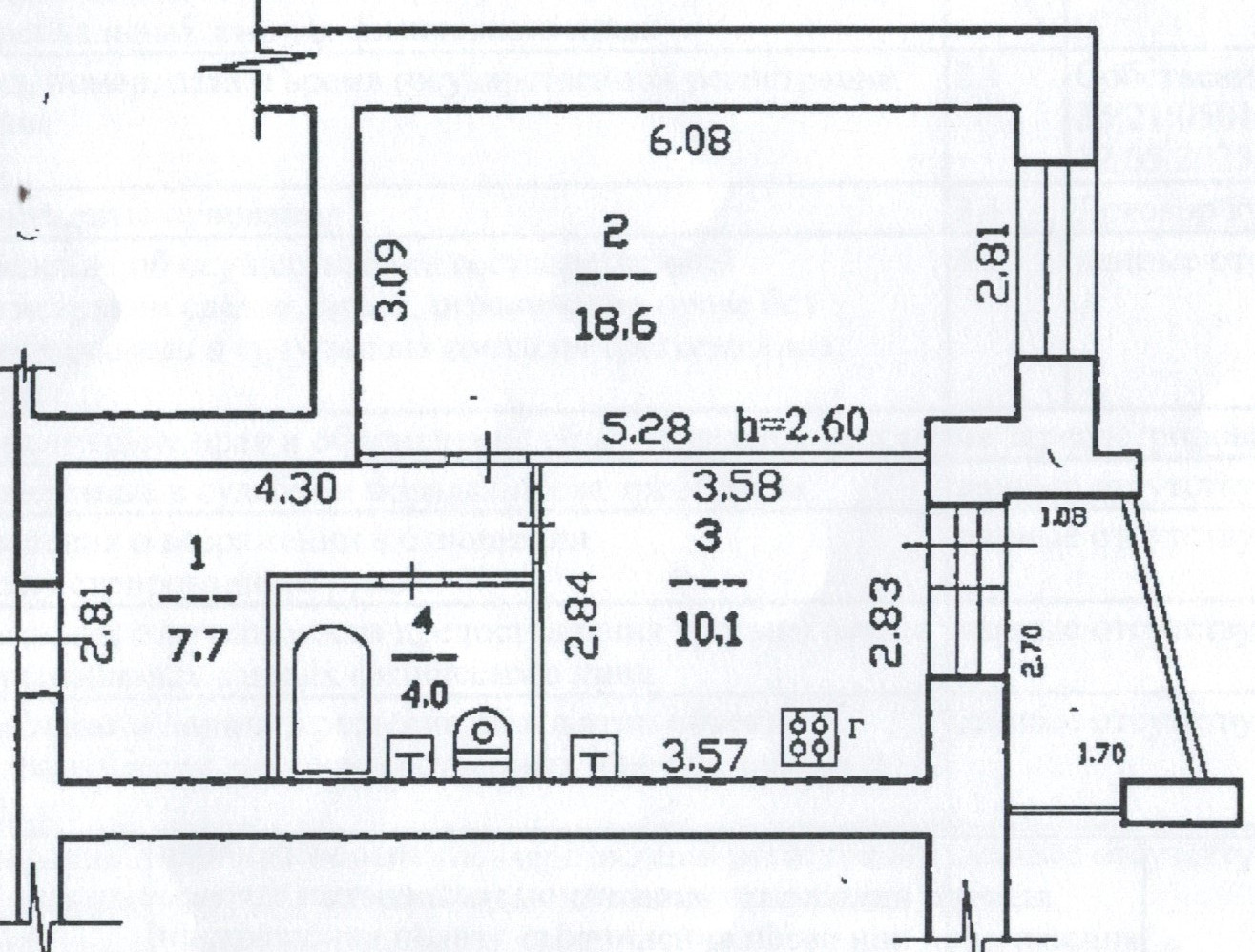 Общая площадь 40.4 м2