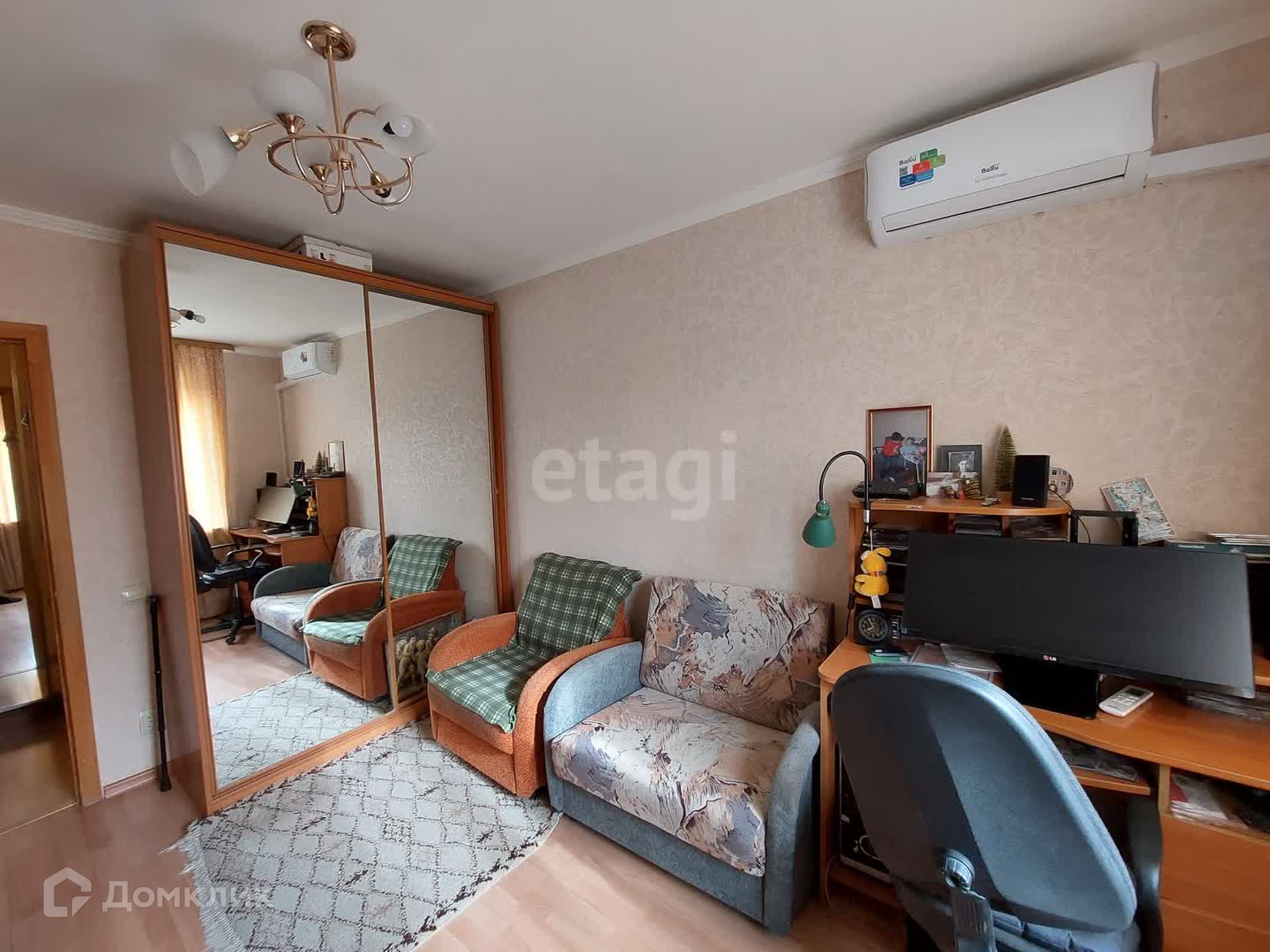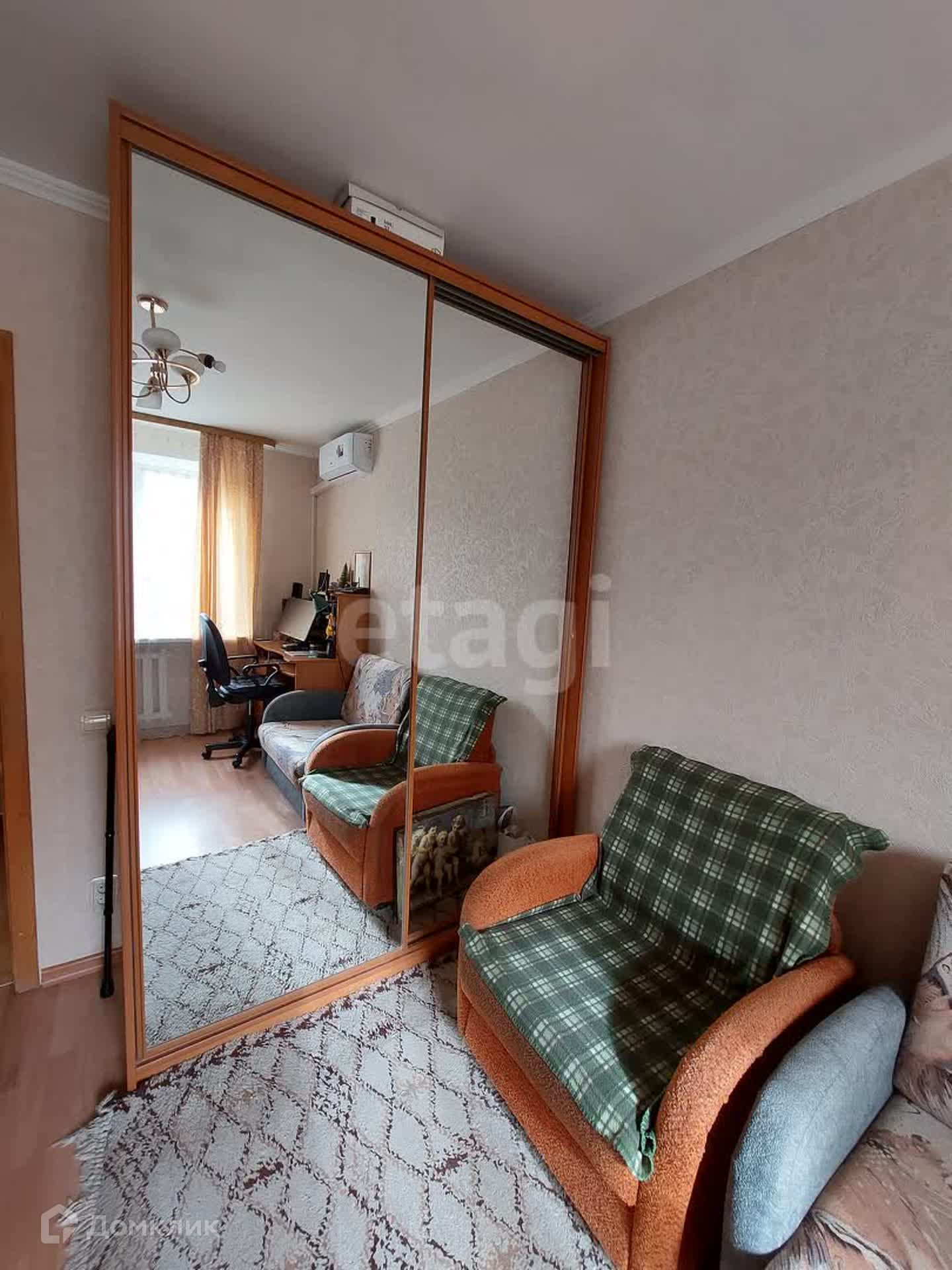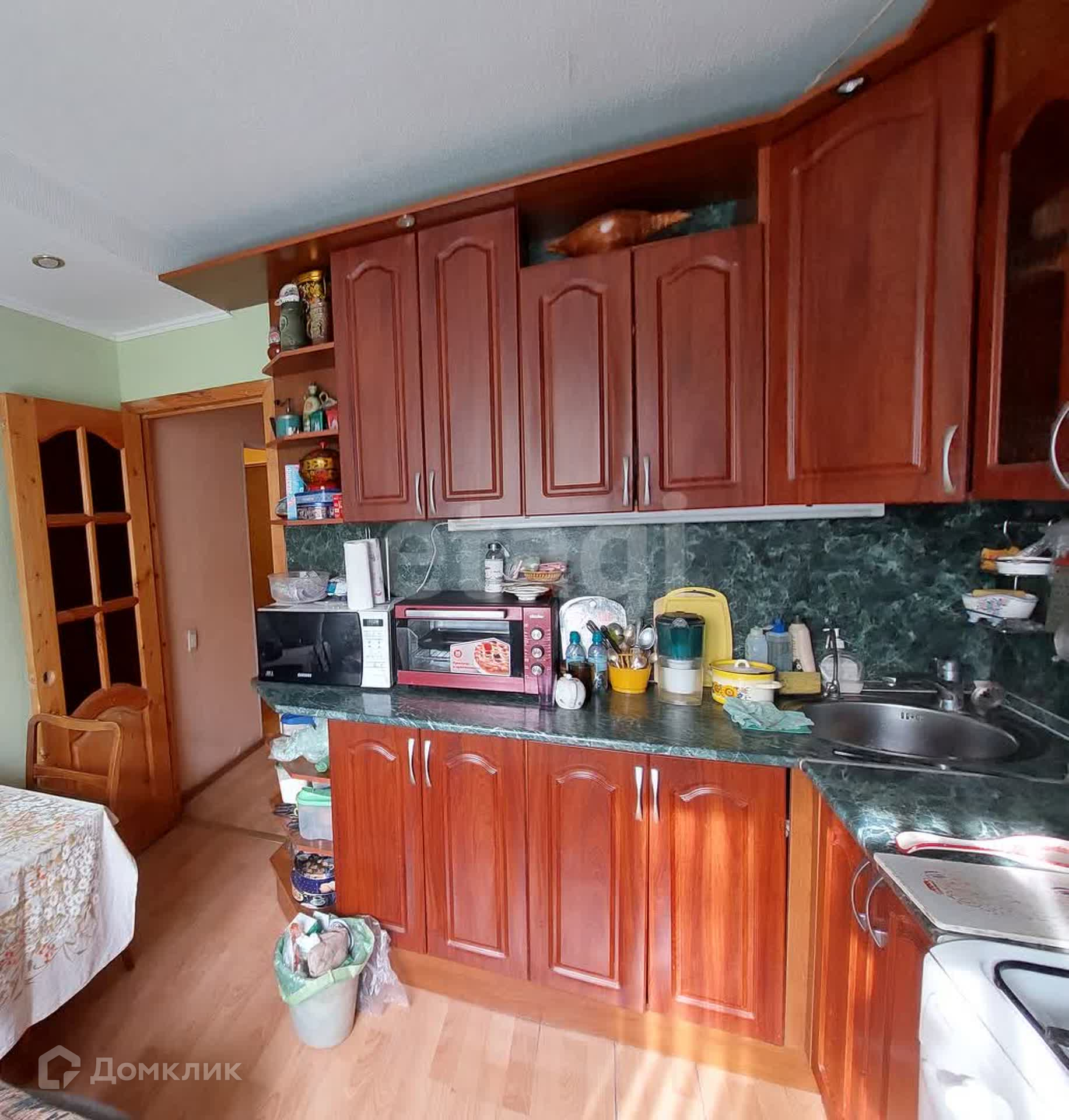В квартире остается кухонный гарнитур, кондиционер, два встроенных шкафа-купе.