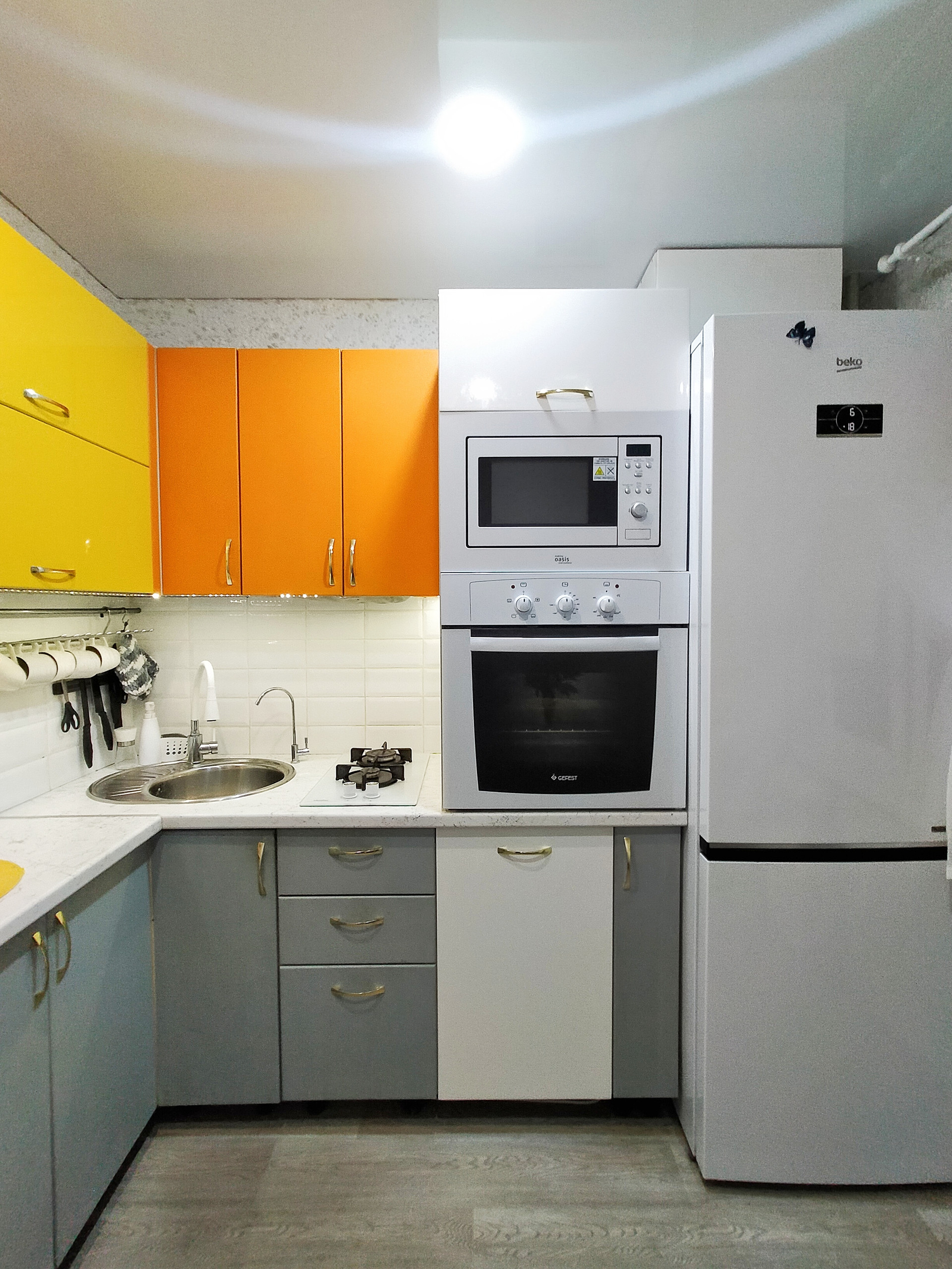В  подарок остаются кухонный гарнитур со встроенной бытовой техникой, встроенный большой шкаф-купе с зеркалом в коридоре, тумба под раковину в ванной комнате!