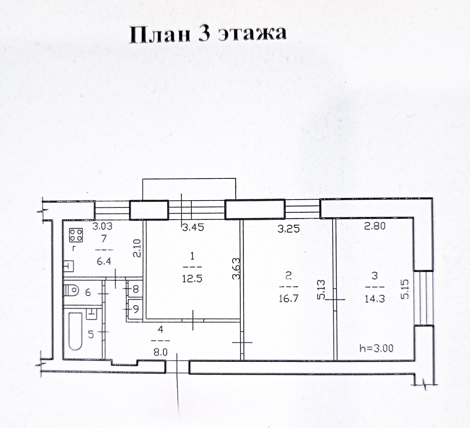 Высота потолков 3 м