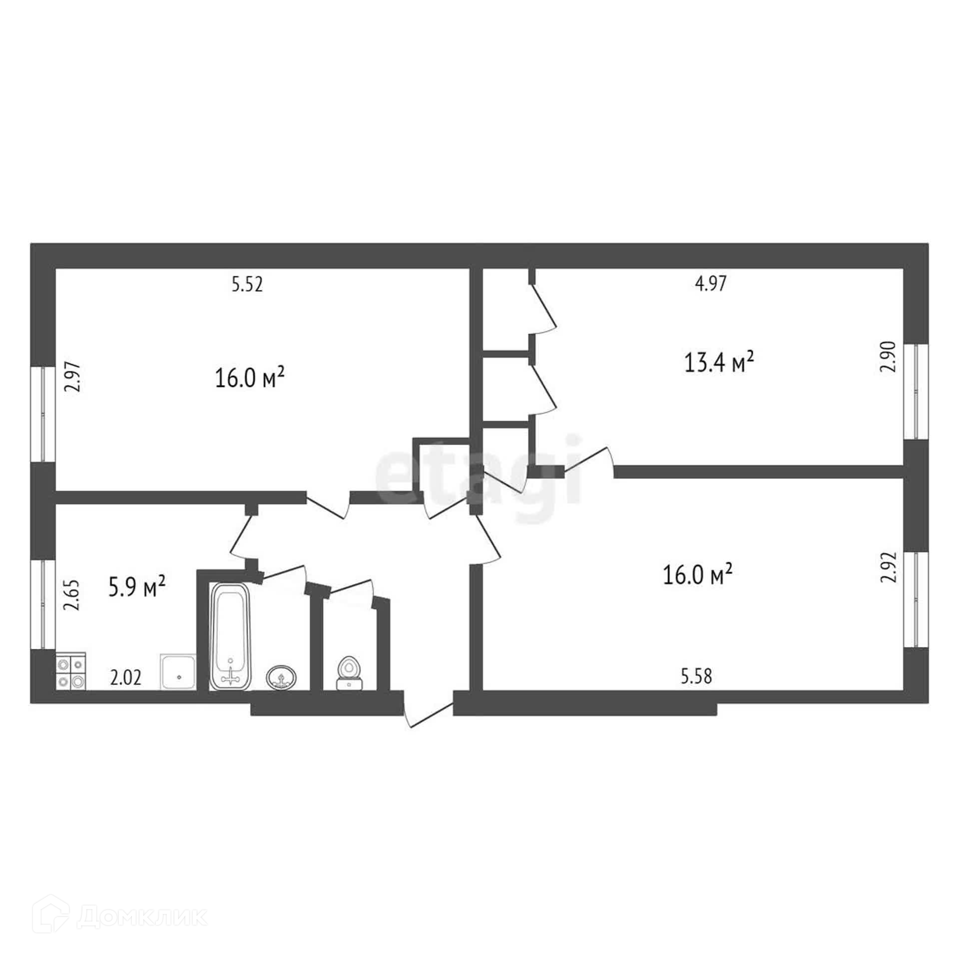 В квартире есть три комнаты, раздельный санузел, что прекрасно подходит для большой и дружной семьи!