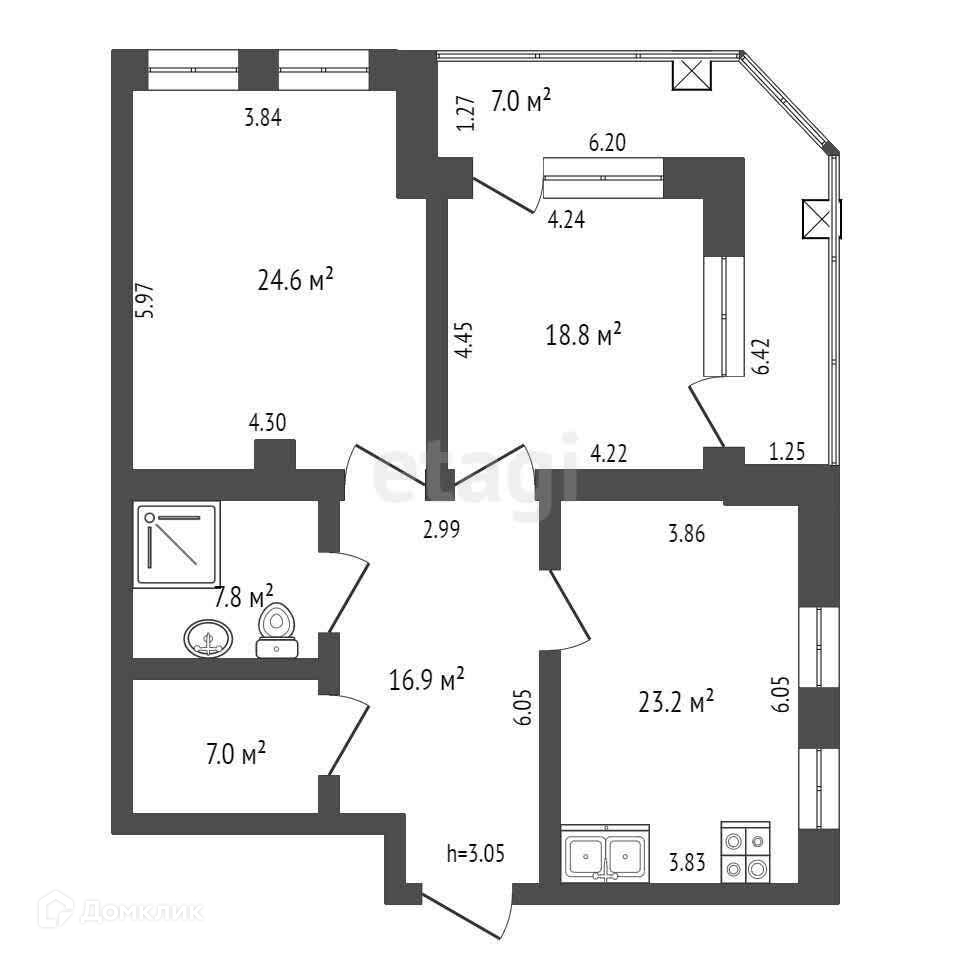 Площадь кухни 23.2 м2