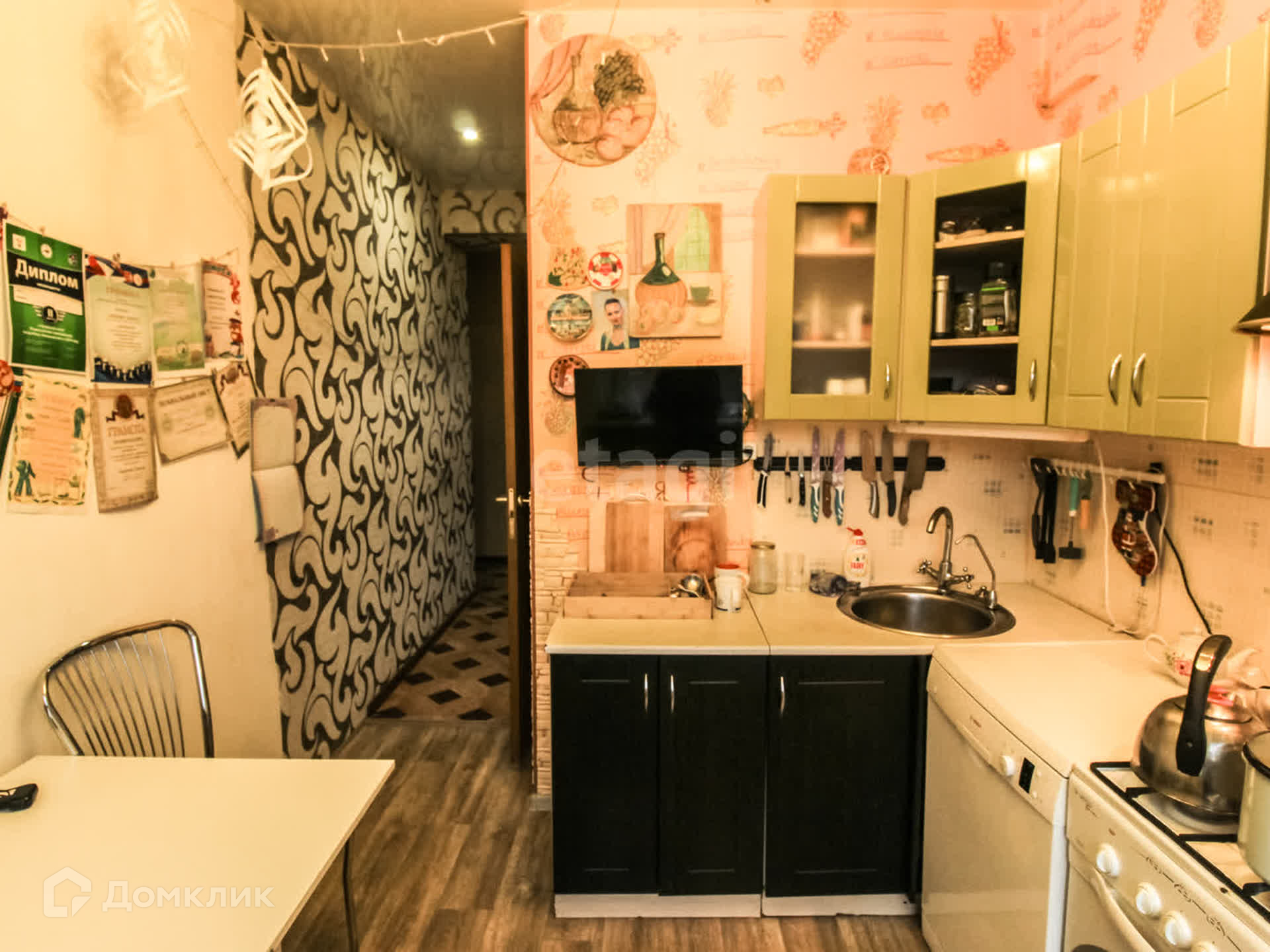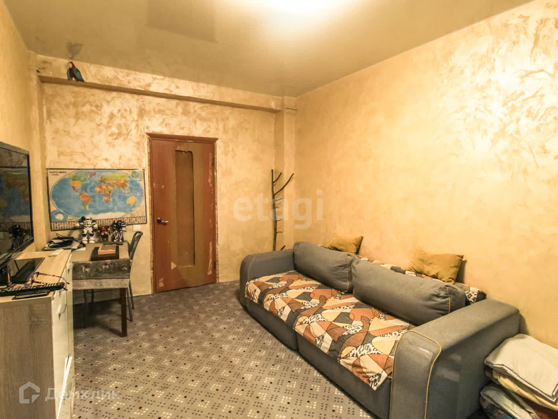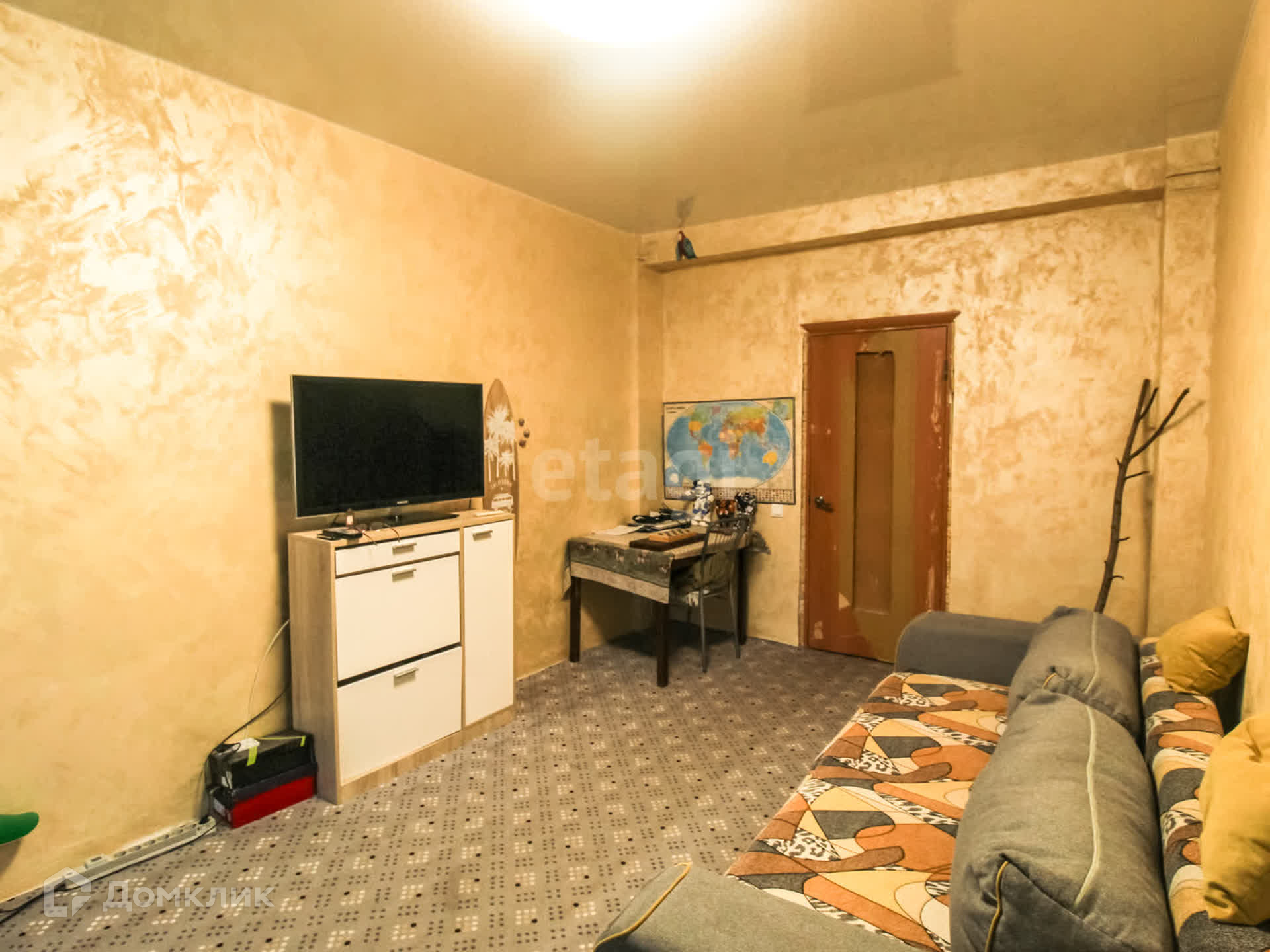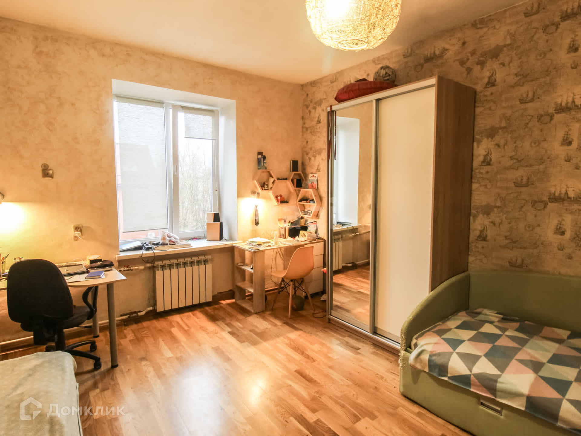 Все коммуникации, потолки и освещение полностью обновлены. Стены коридора и кухни выровнены гипсокартоном. Полы разделены на зоны: коридор и кухня оборудованы промышленным ламинатом, в спальне и детской уложен паркет, а в гостиной комнате установлен ковровое покрытие по всему периметру.