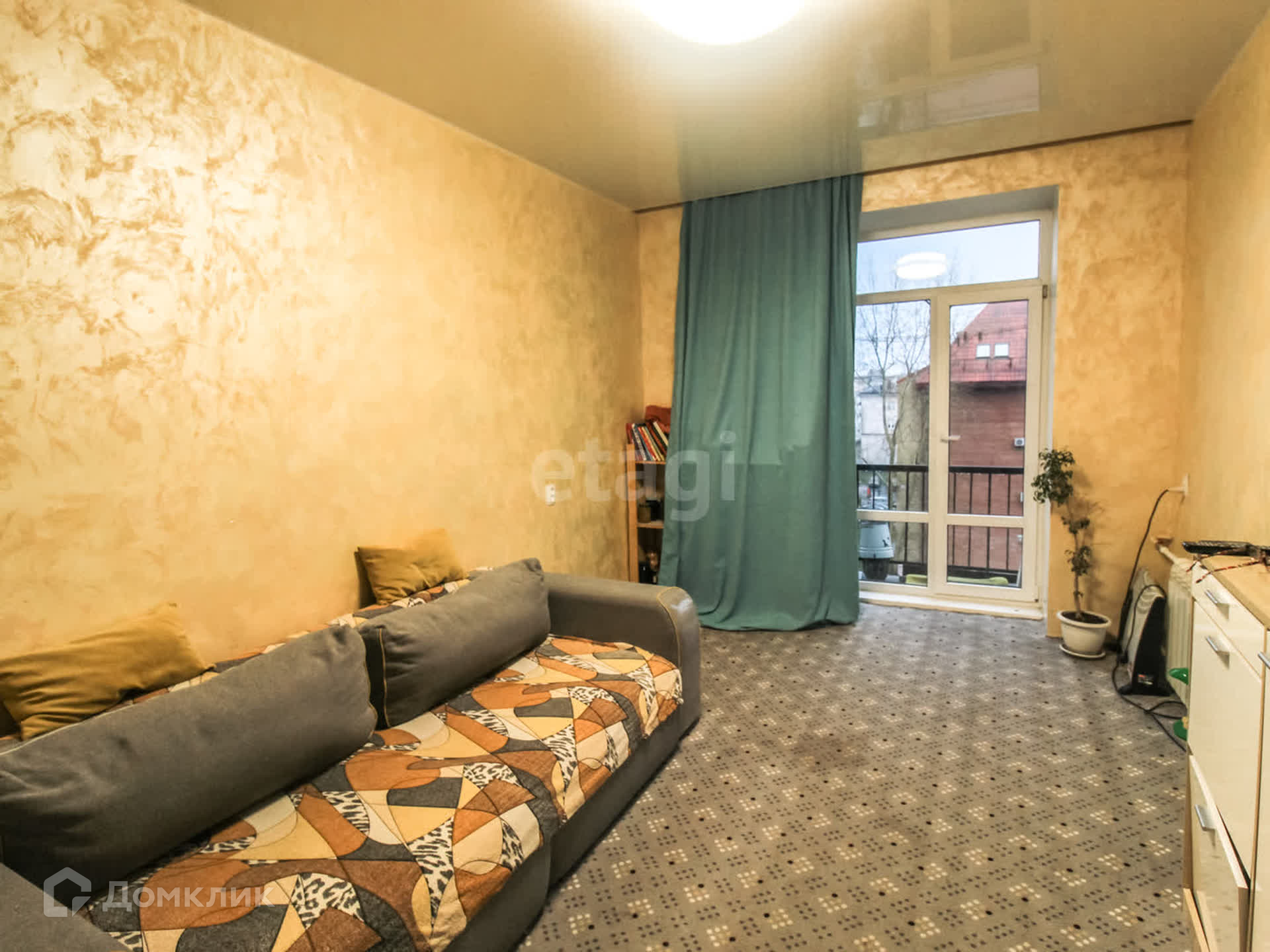 В продаже представлена квартира в самом центре города с высокими потолками и просторными окнами.