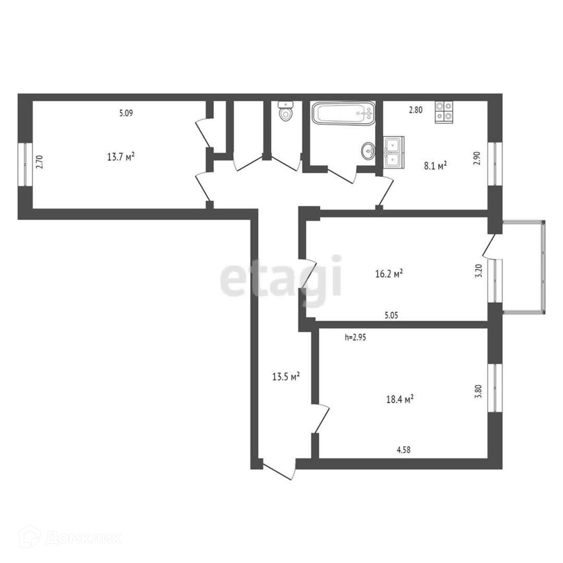 Общая площадь 77.2 м2