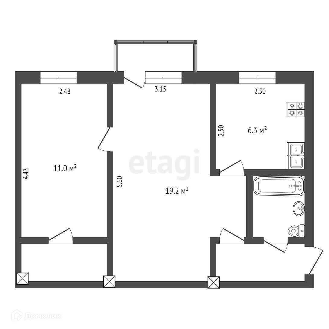Площадь кухни 6.3 м2