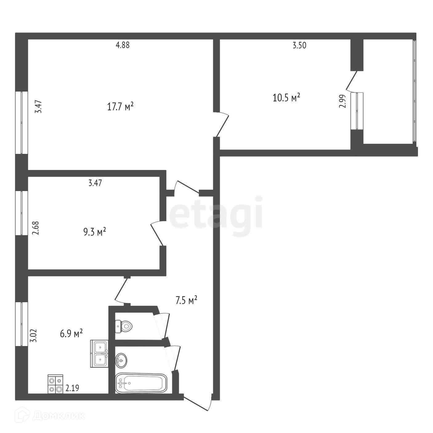 Общая площадь 54.8 м2