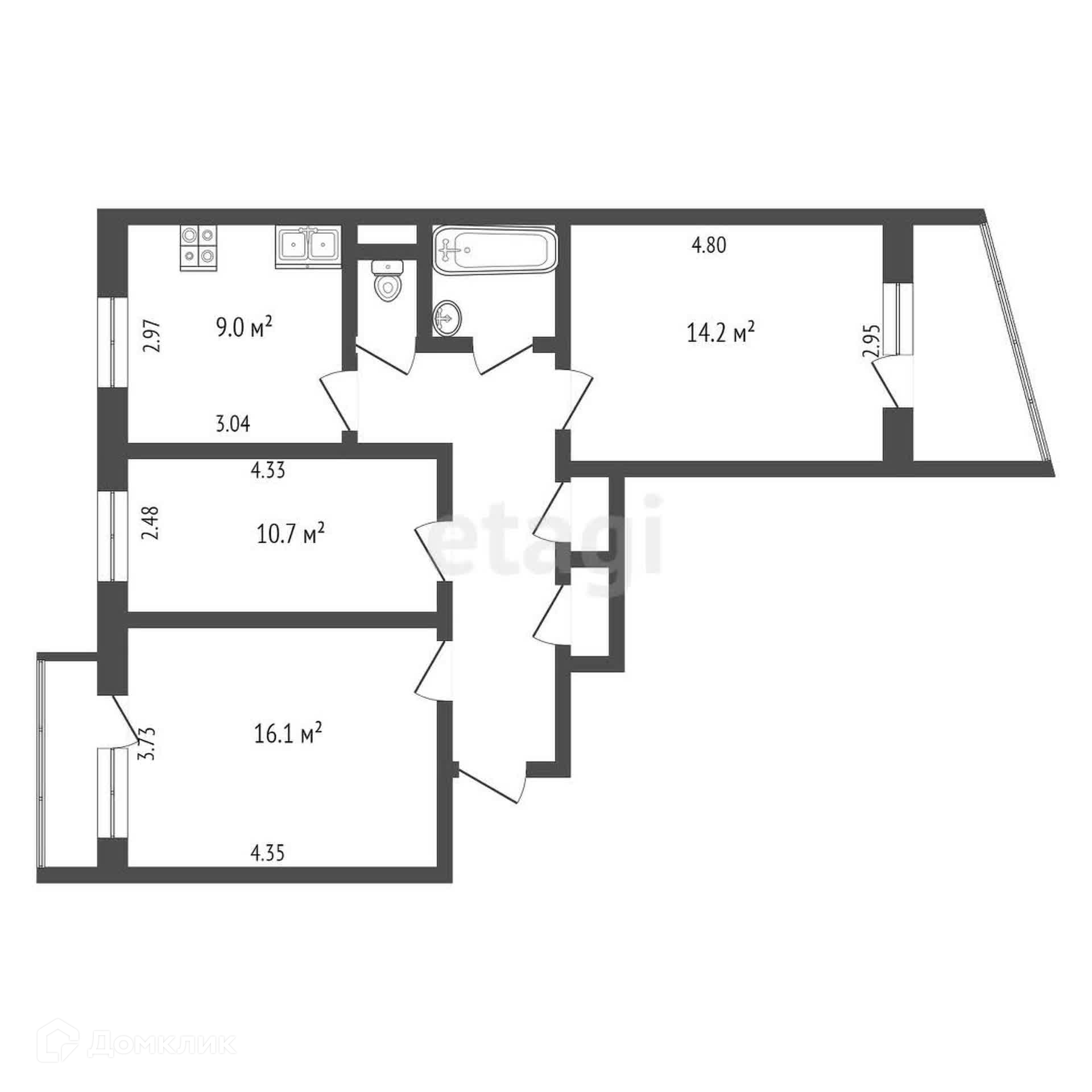 3-комнатная квартира, 67.1 м2, этаж 9 / 9, на продажу в Череповце, Остинская улица, 40