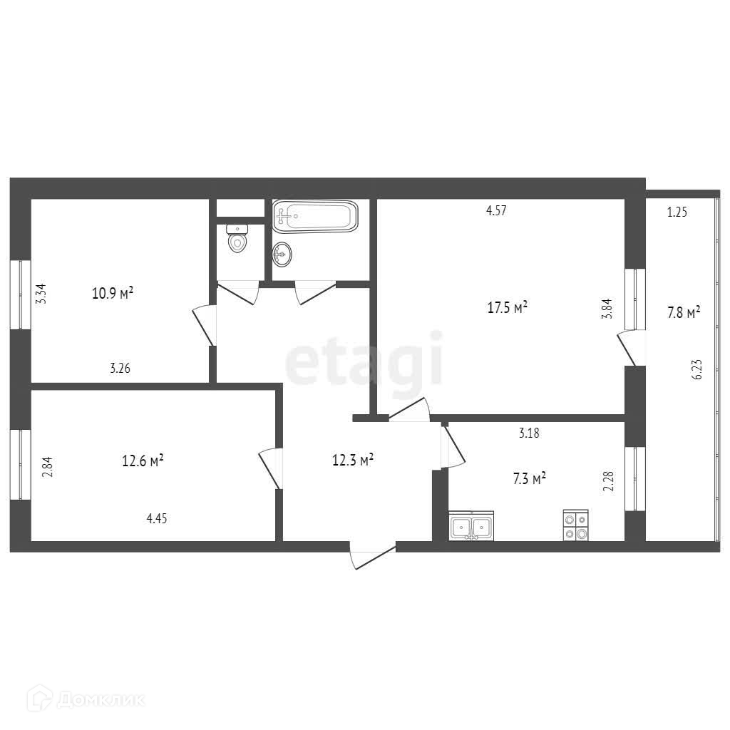 3-комнатная квартира, 64.2 м2, этаж 1 / 5, на продажу в Череповце, Октябрьский проспект, 77А