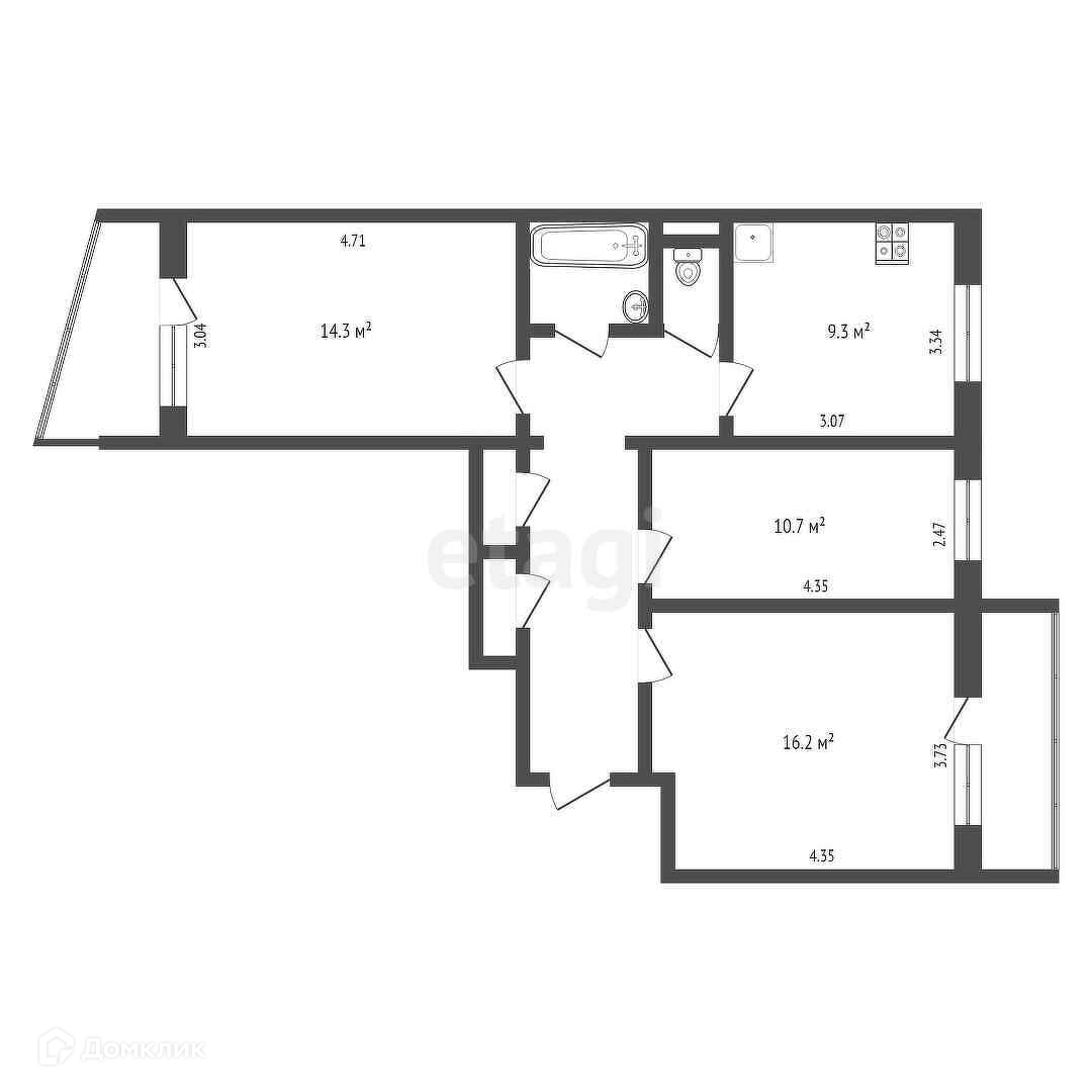 3-комнатная квартира, 67.2 м2, этаж 3 / 9, на продажу в Череповце, Ленинградская улица, 16