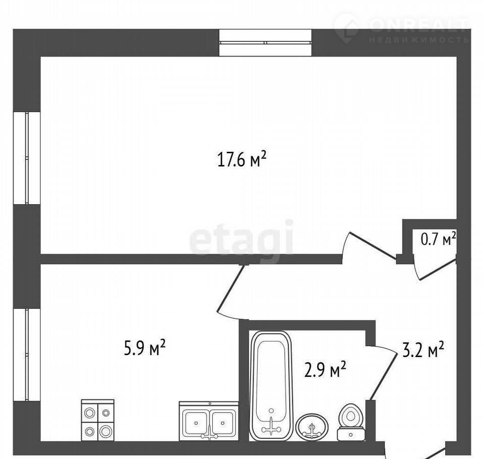 Общая площадь 30.3 м2