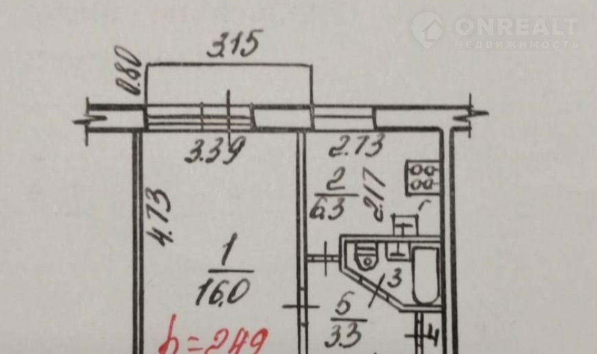 1-комнатная квартира, 28.6 м2, этаж 4 / 5, на продажу в Череповце, Архангельская улица, 42